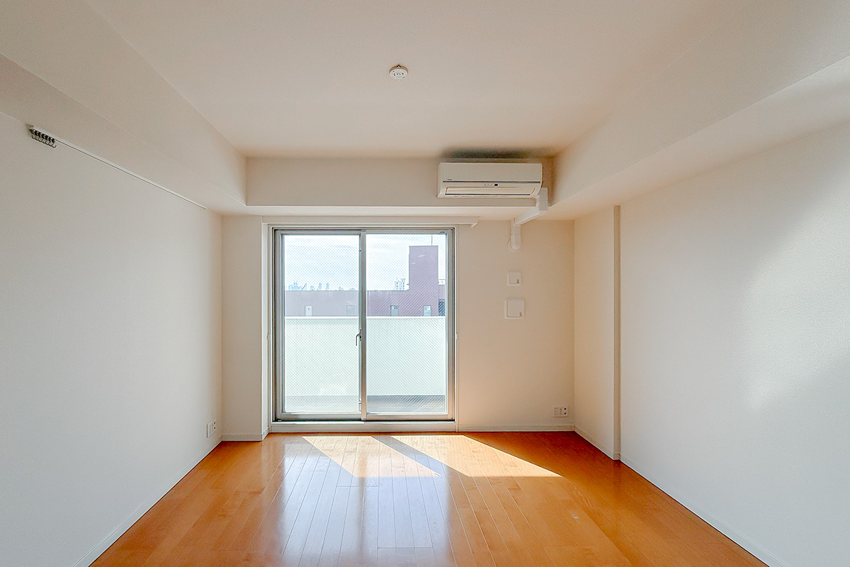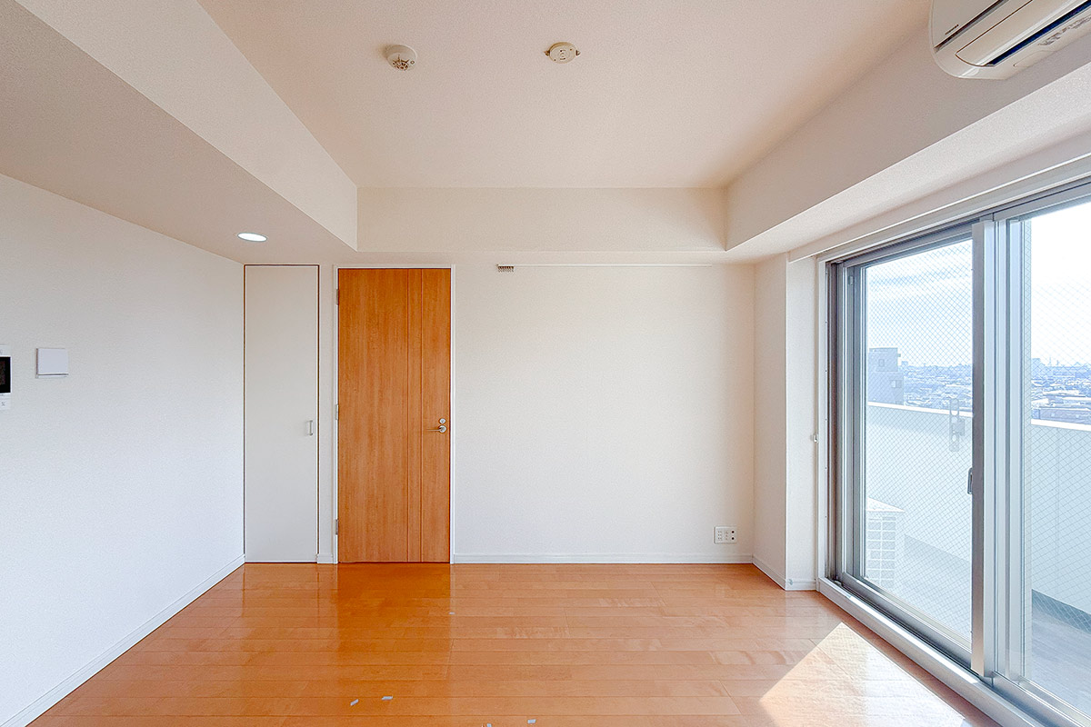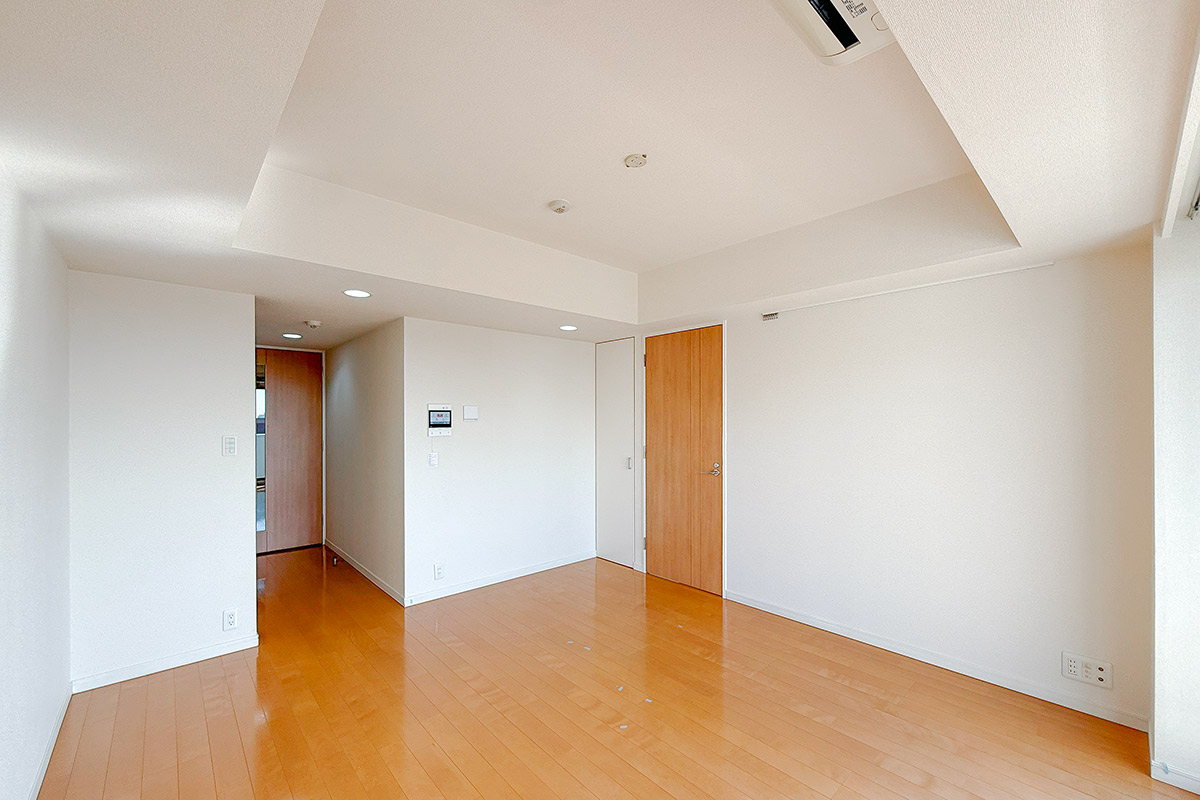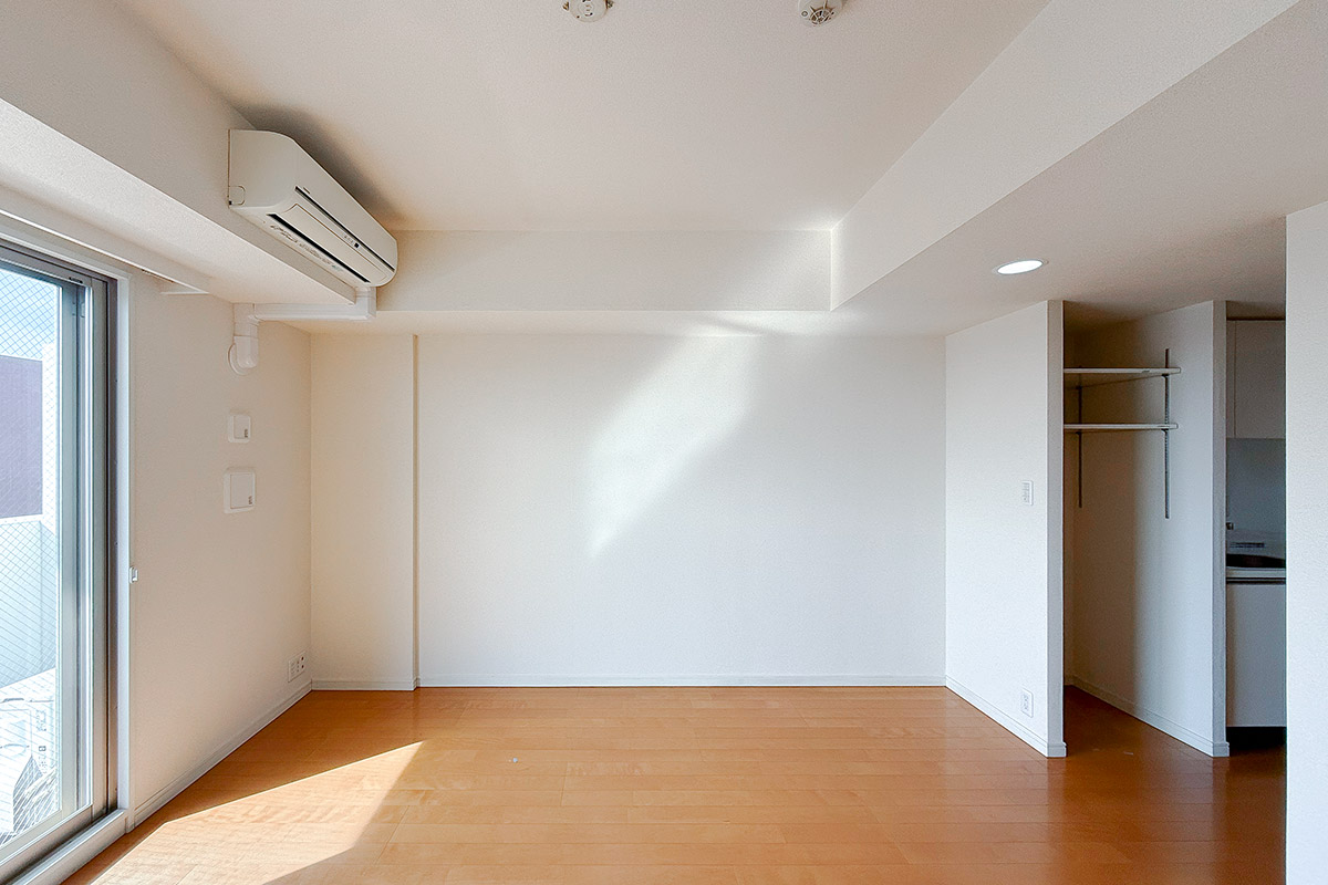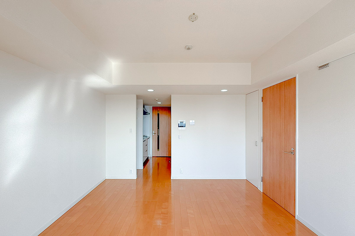 間取りは8.7帖のリビングと6.1帖の寝室、家具配置もしやすく内装もシンプル。