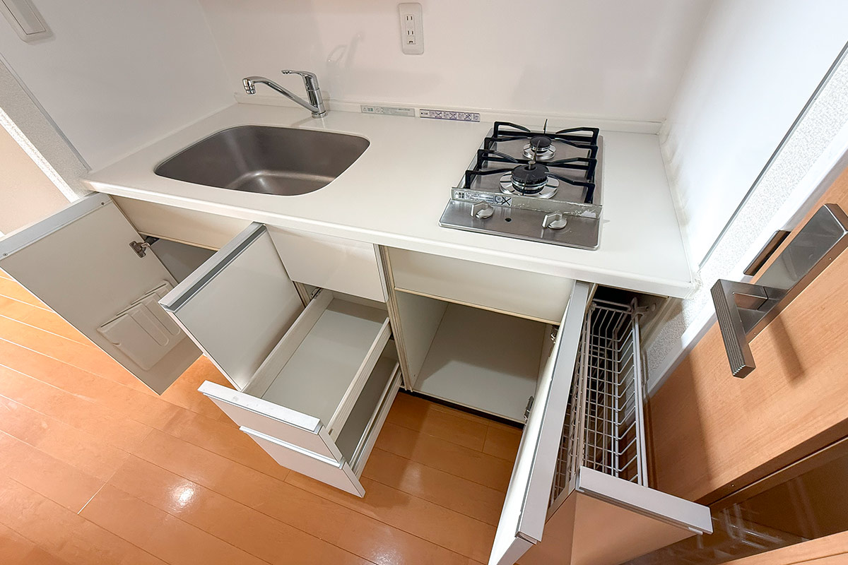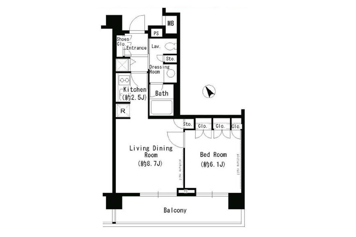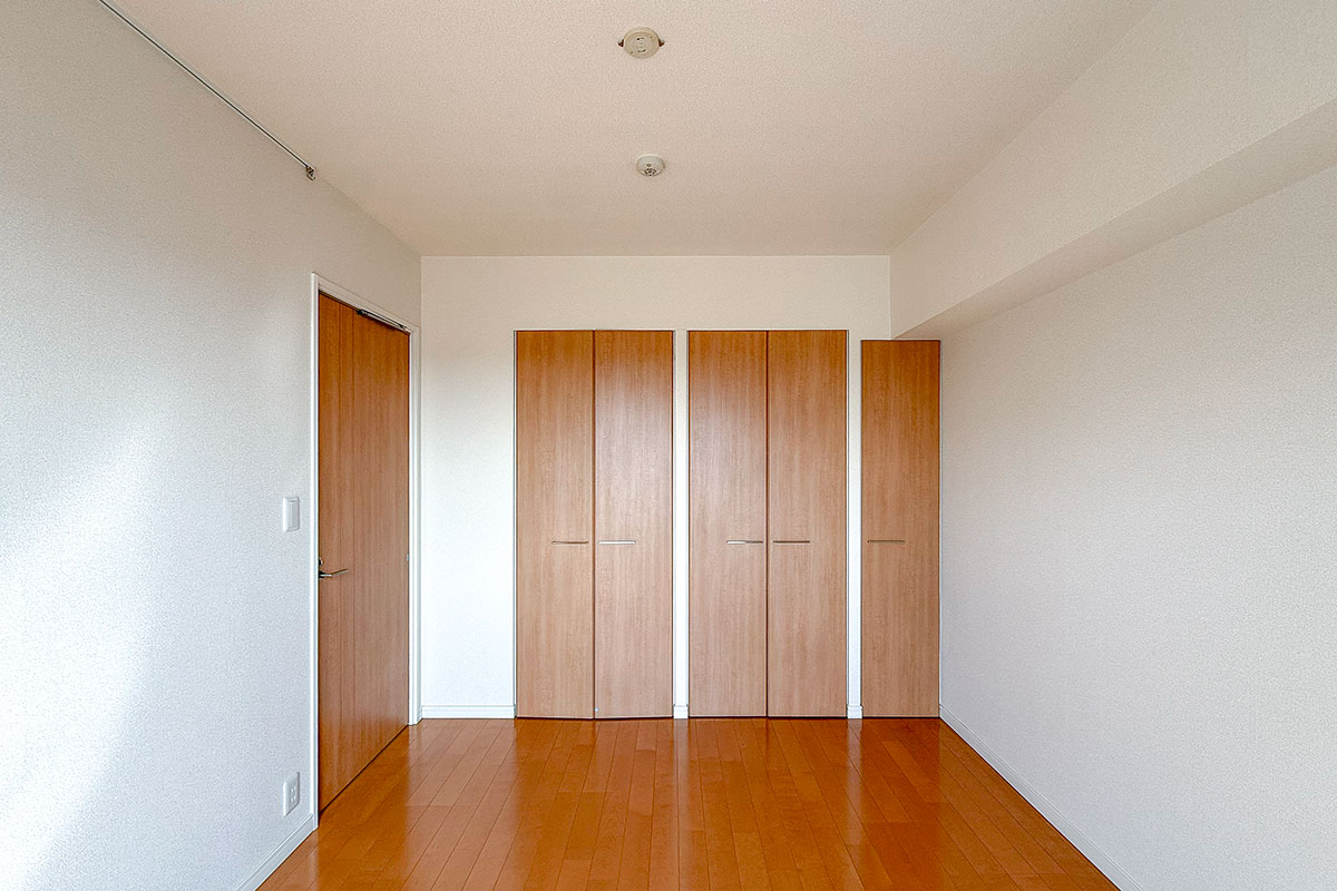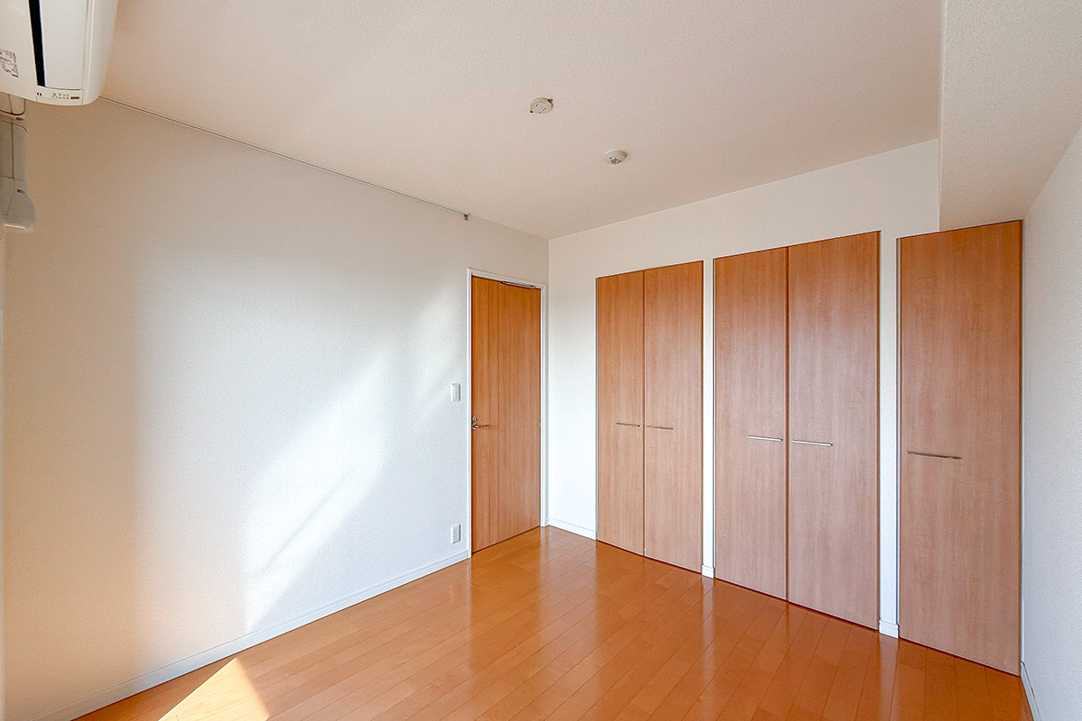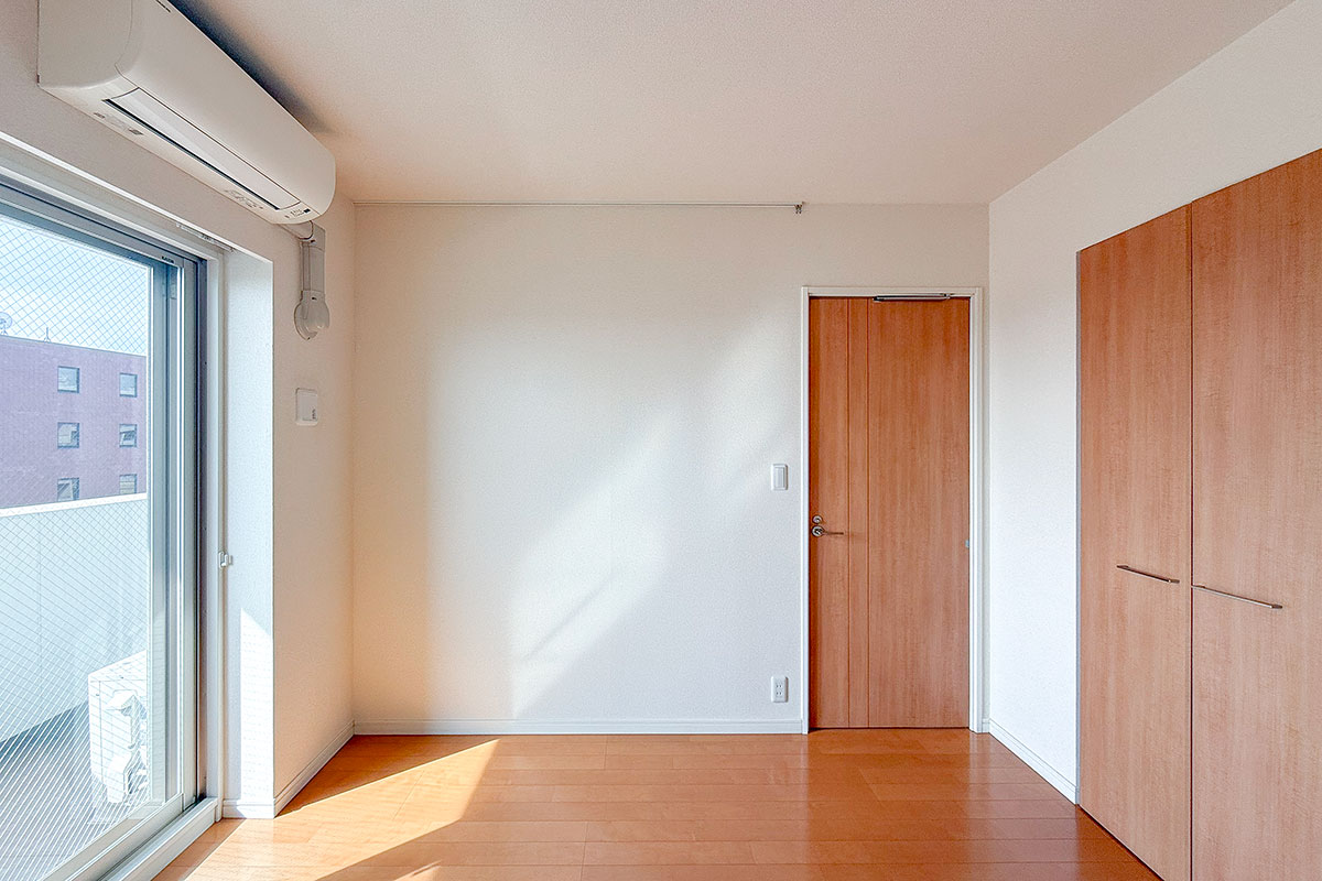 間取りは8.7帖のリビングと6.1帖の寝室、家具配置もしやすく内装もシンプル。