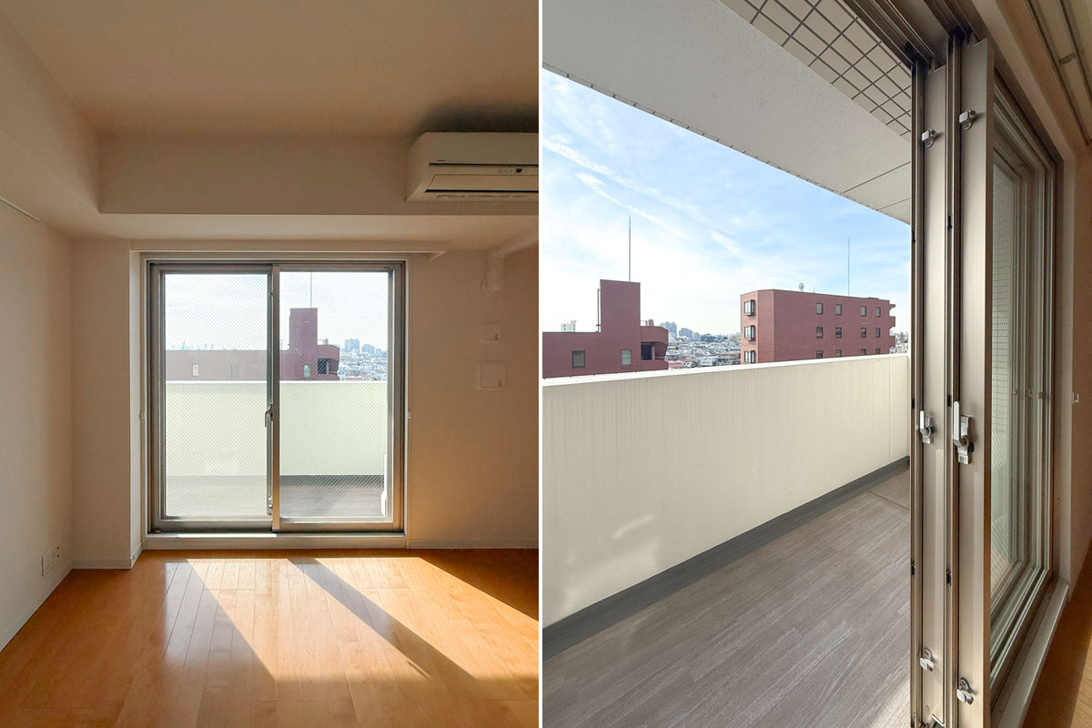 リビング、寝室どちらにも面したバルコニーは広さもしっかり!