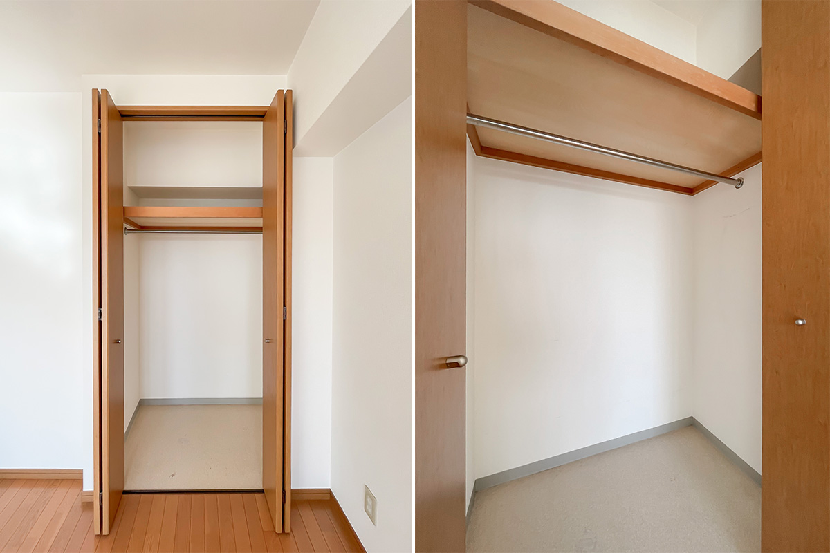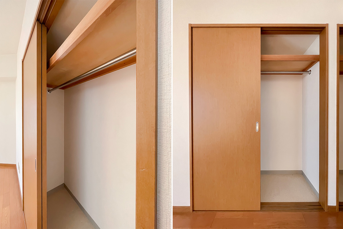 手持ちの洋服が多い方はもう少し収納が欲しいところですが、空間の広さ・余白はあるので工夫次第で窮屈感なく、収めていただけそうです。