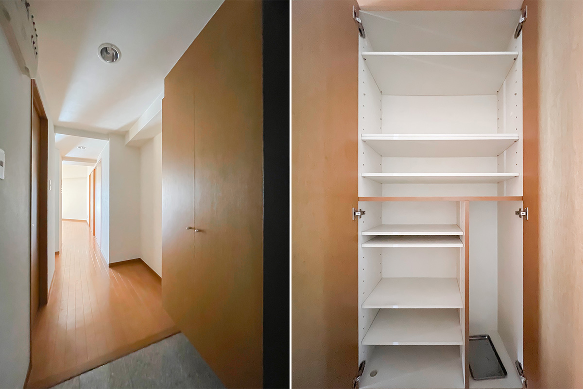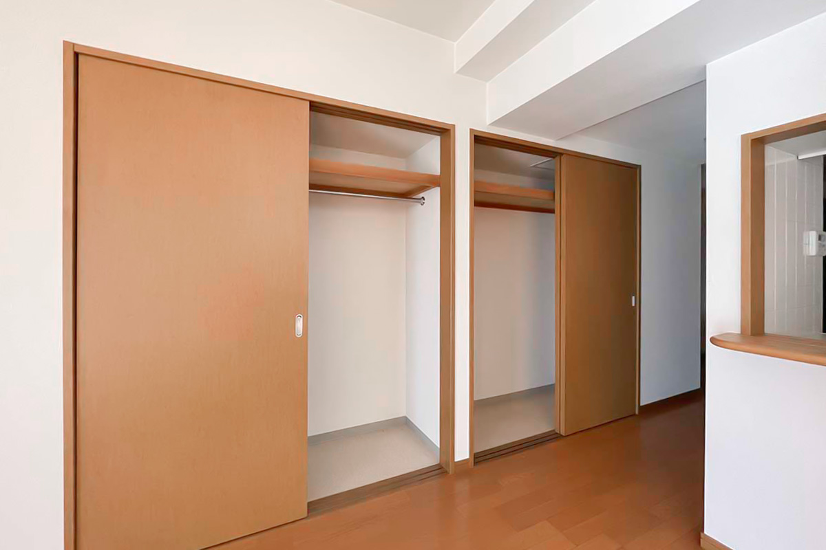 収納は洋室に1箇所、リビングの入口にもクローゼットと物入空間。