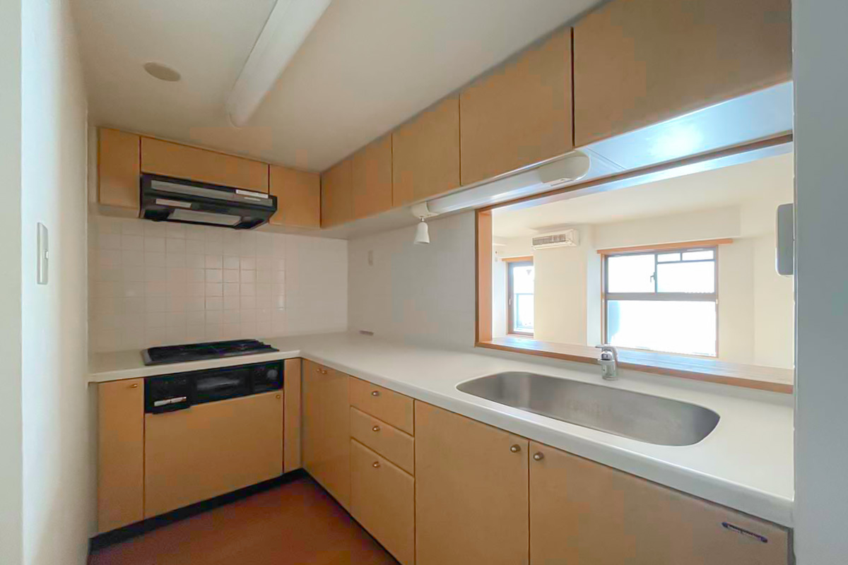 L字のカウンターキッチンで収納も豊富。2人並んで料理を楽しむ週末が想像できます。