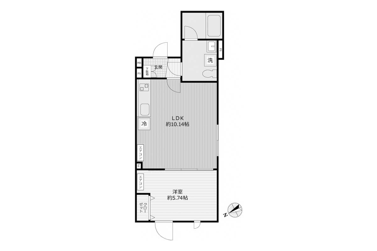リビングと洋室はスライドドアで仕切る形で、1つのワンルームとしてもお使いいただけます。
