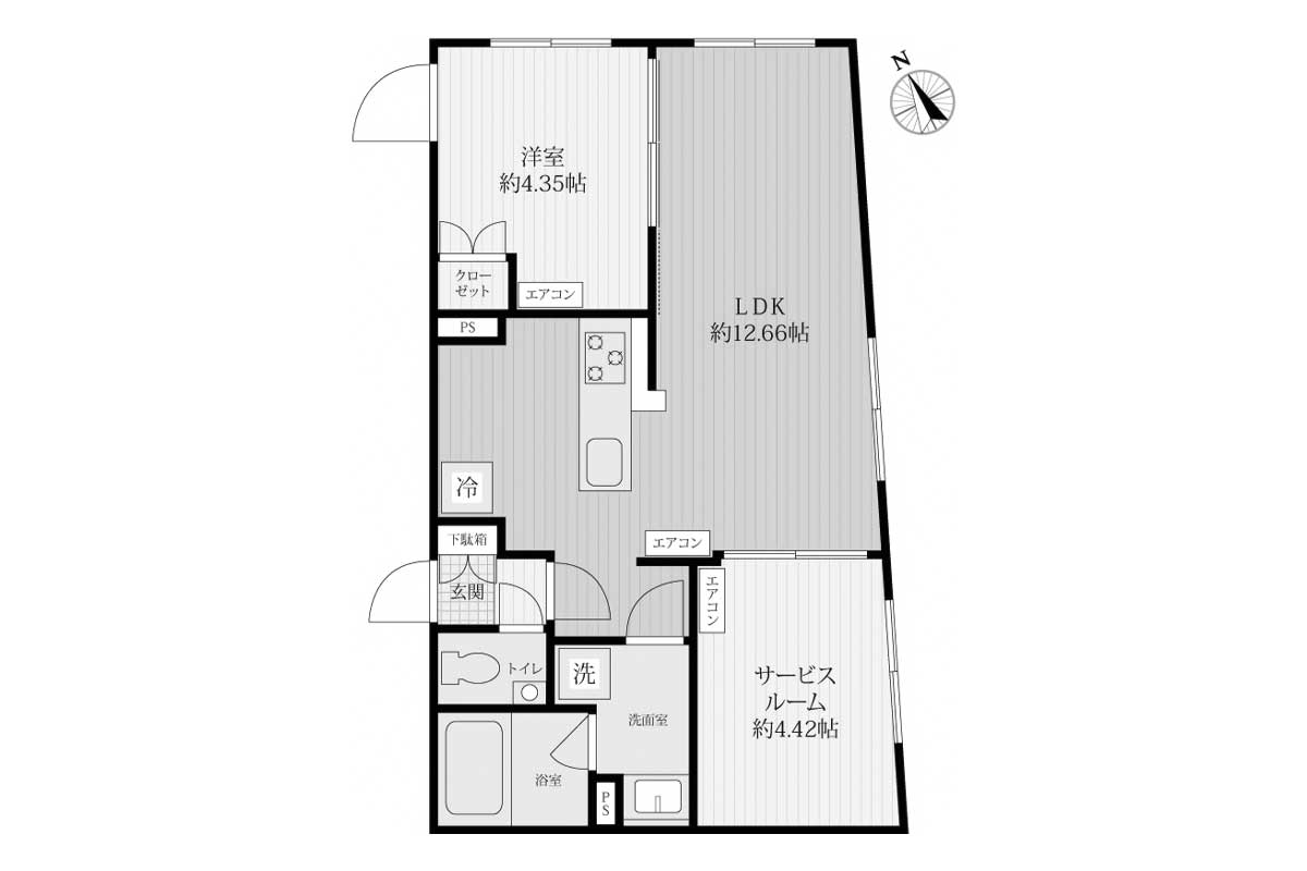 サービスルーム・洋室はどちらもリビングからアクセスする形になっており、それぞれリモートワークする2人暮らし・兄弟姉妹での2人暮らしにも良さそうな間取りです。はたまたサービスルームをウォークインクローゼットのように使うのもあり。