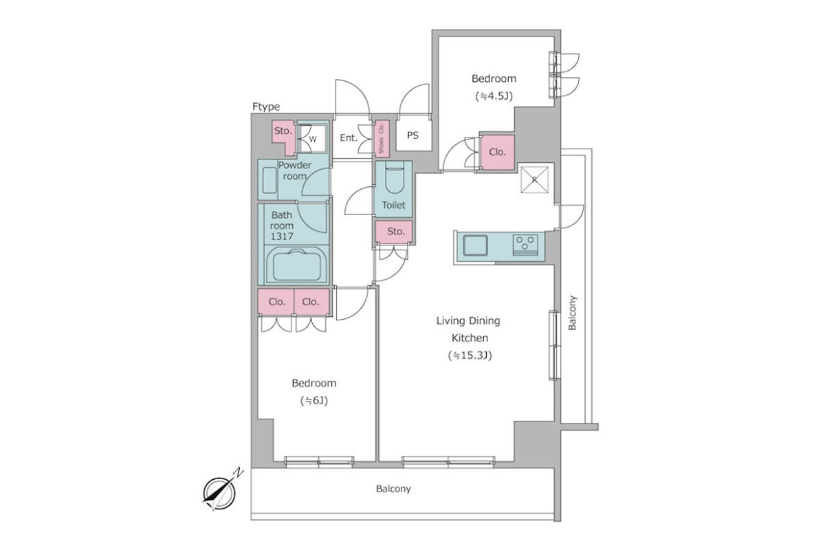 6帖と4.5帖の洋室にはそれぞれクローゼット収納付き。