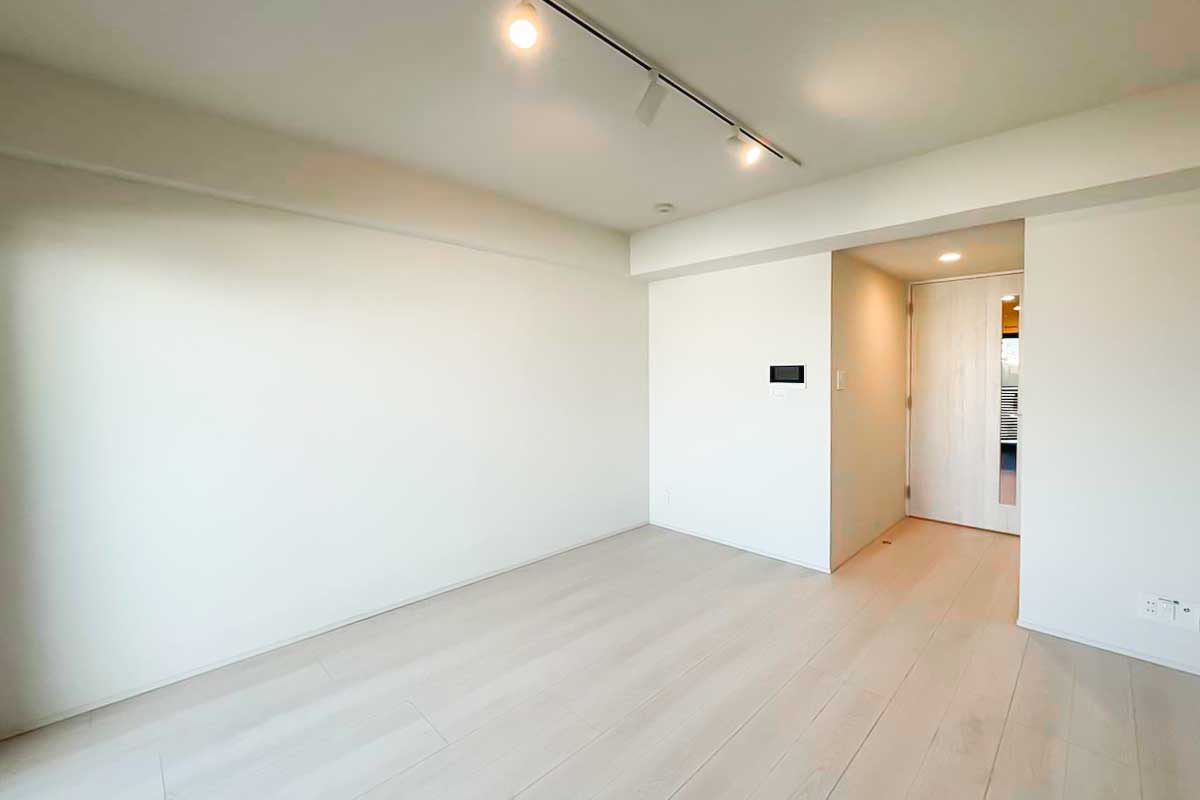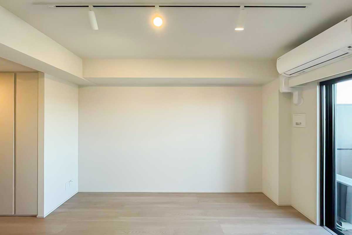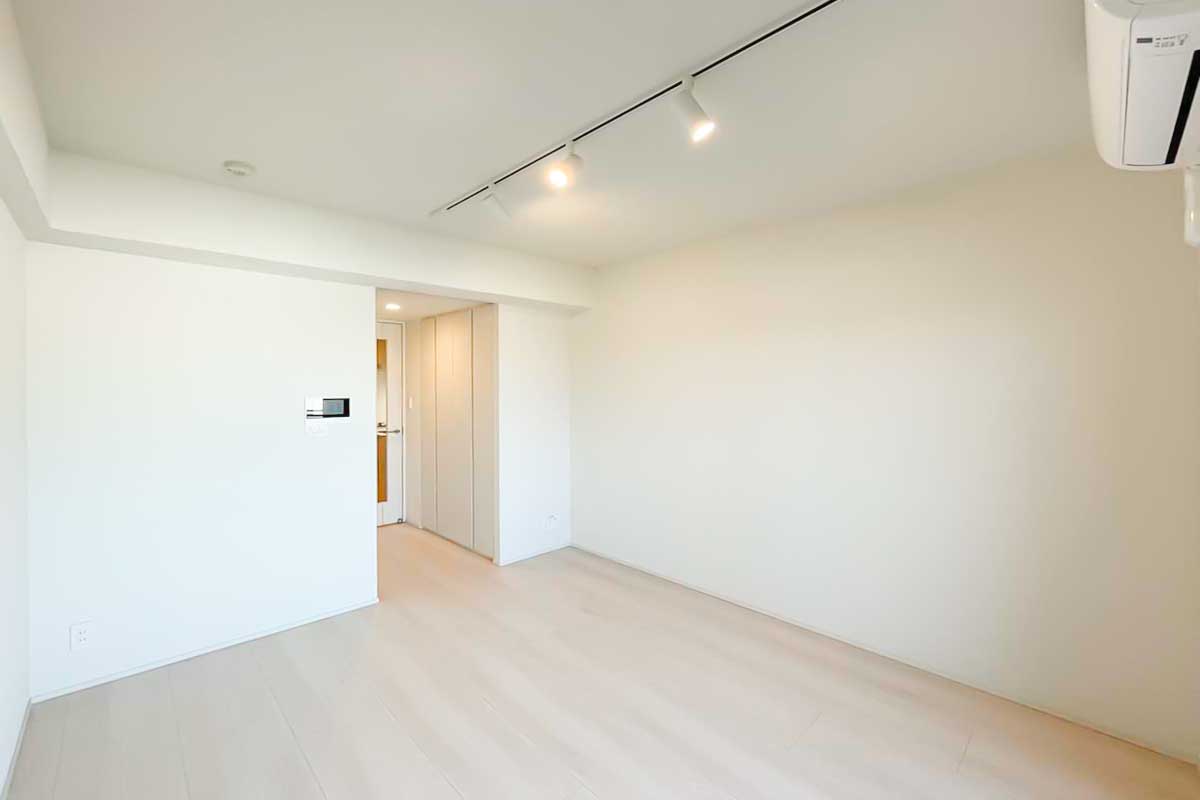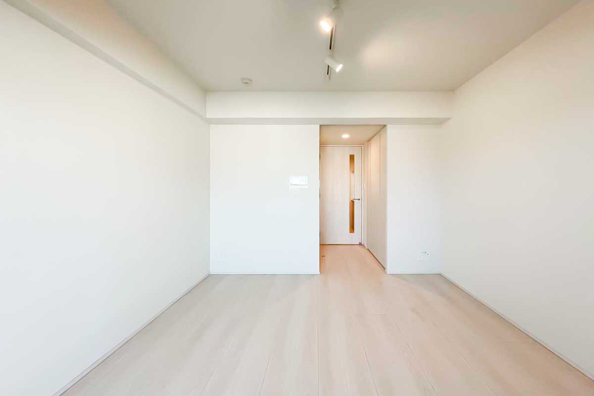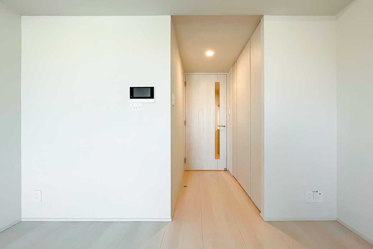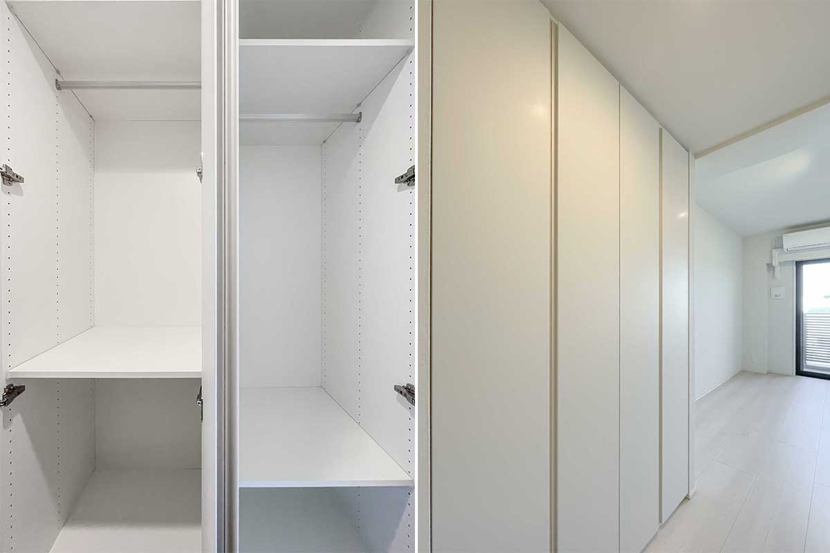 ドアを開けて少し廊下のような空間にクローゼットが設けられており、バルコニー以外の3面の壁を自由に使えます。