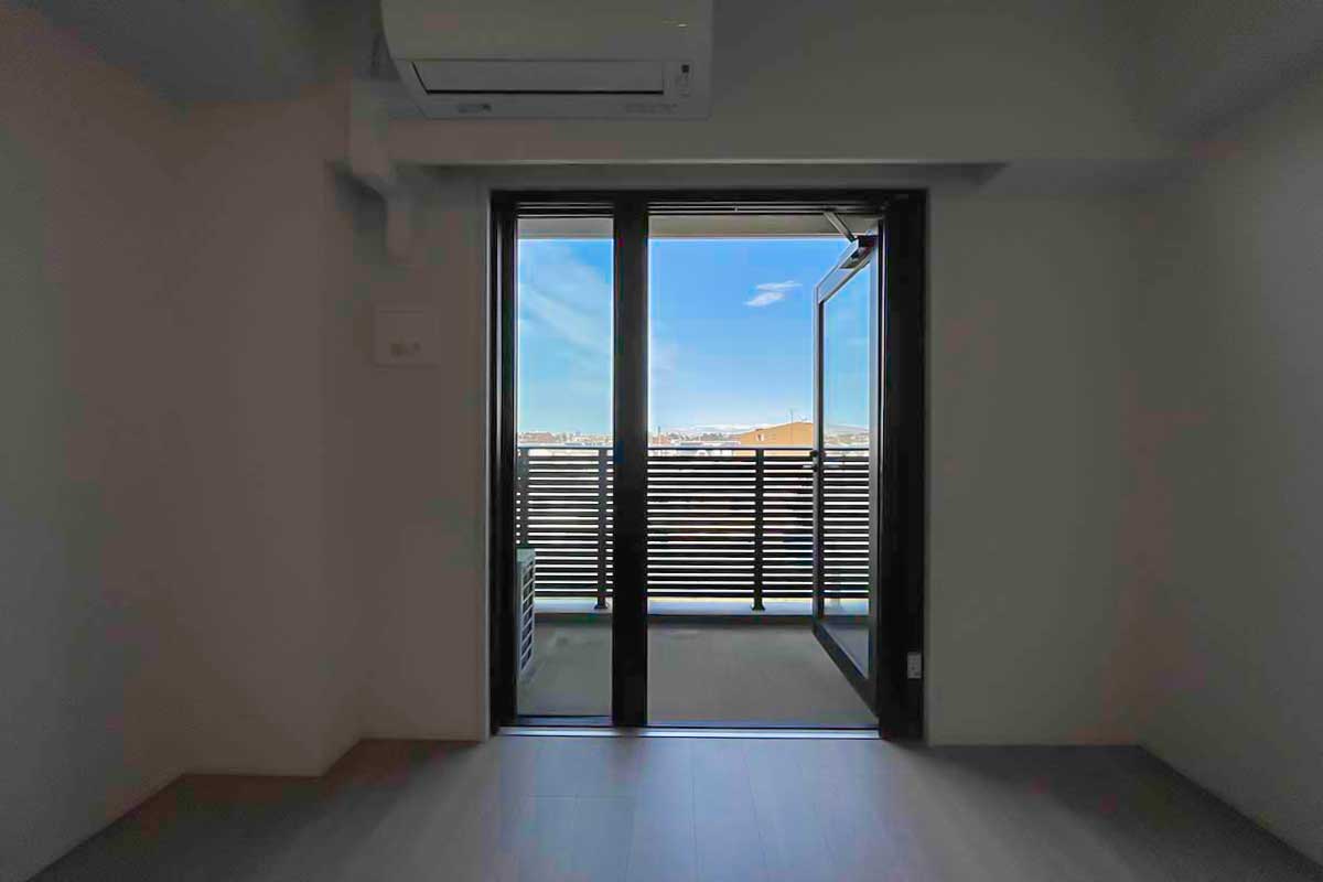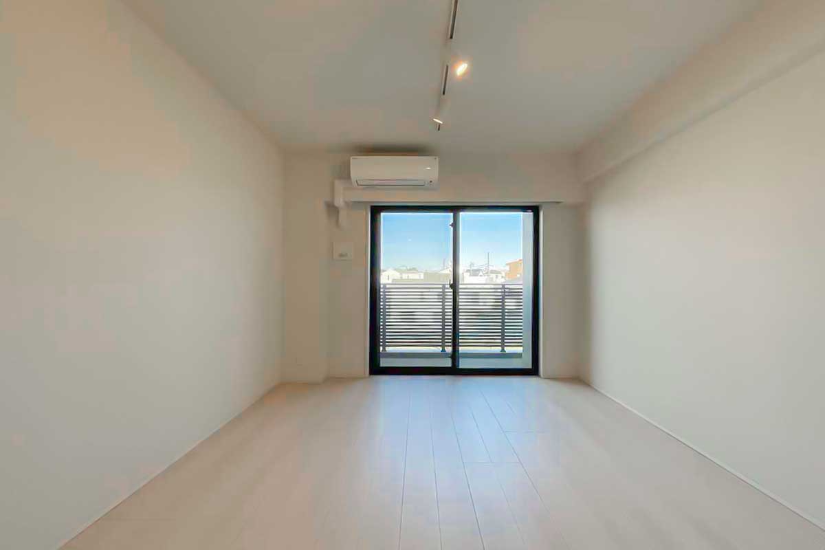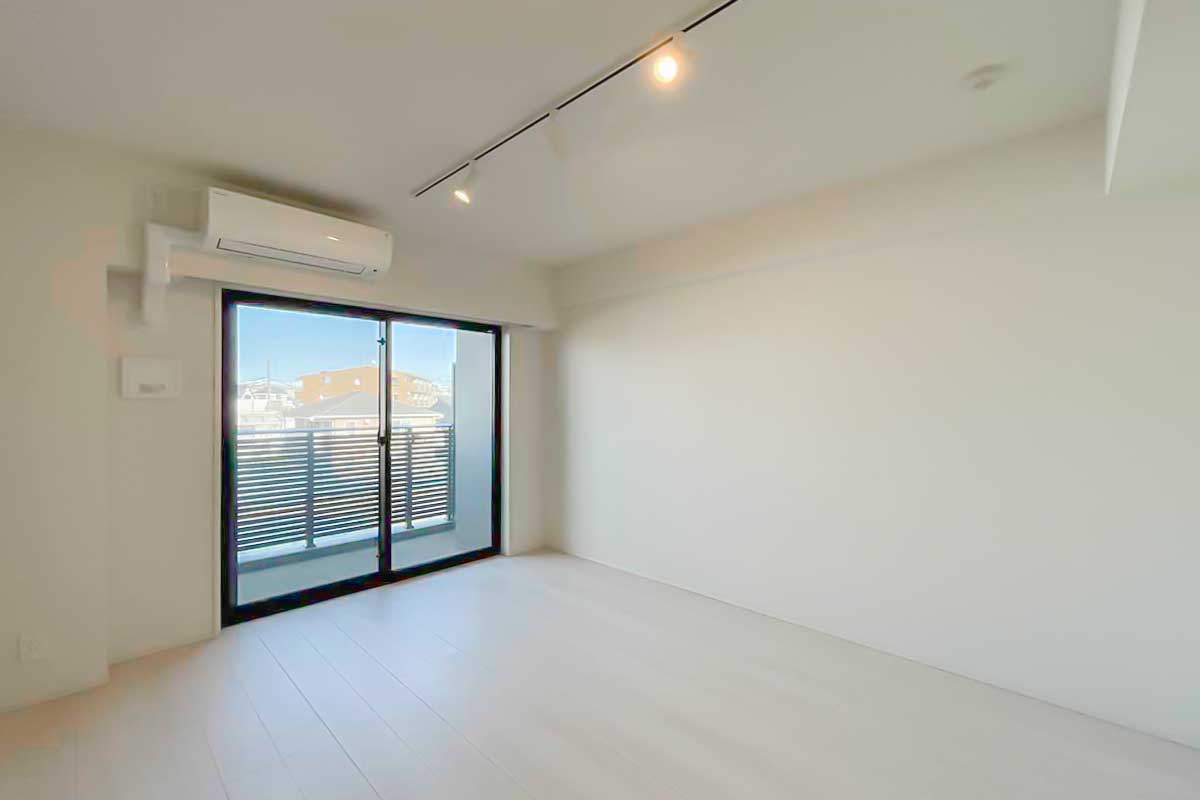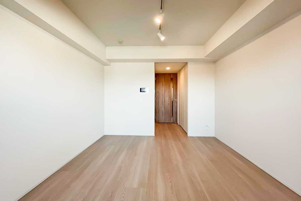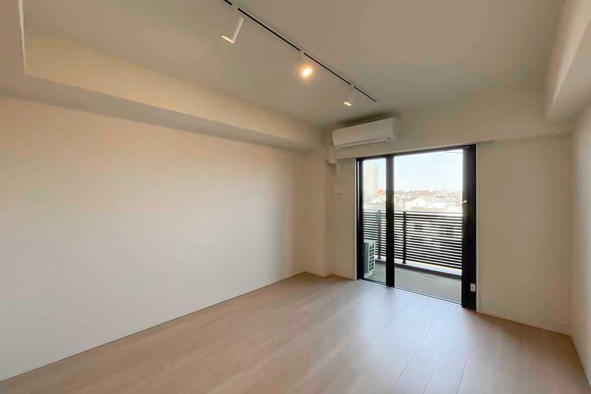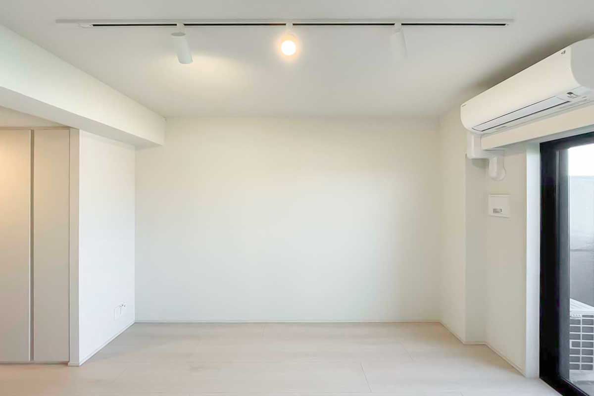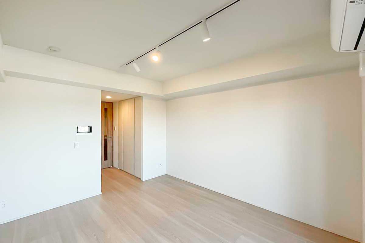 ドアを開けて少し廊下のような空間にクローゼットが設けられており、バルコニー以外の3面の壁を自由に使えます。