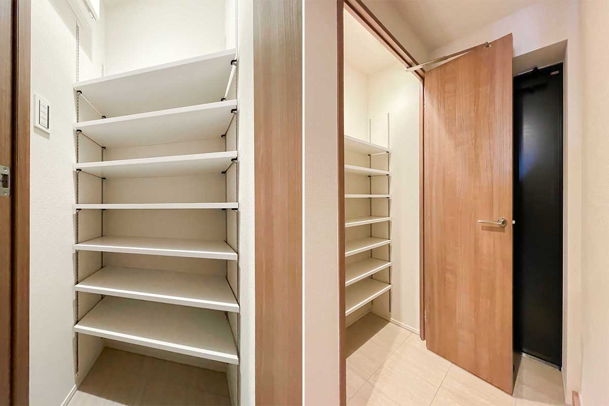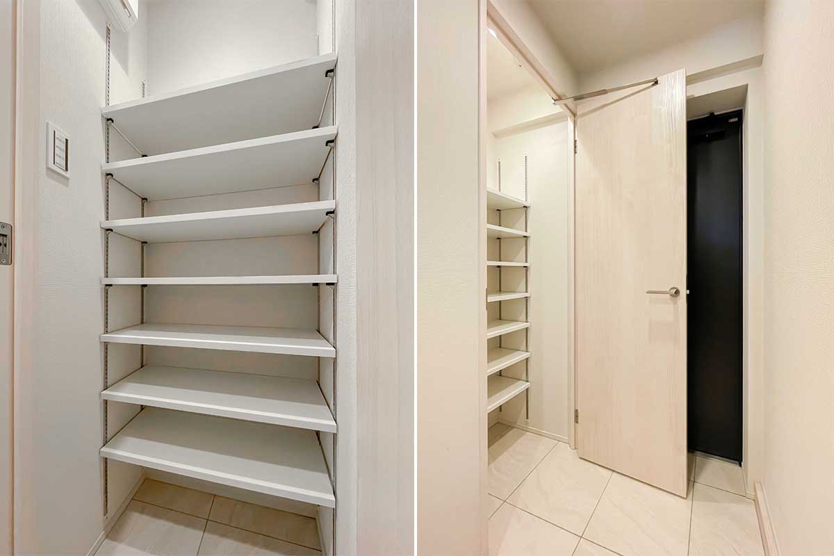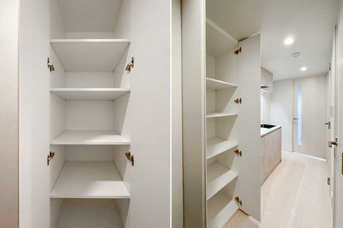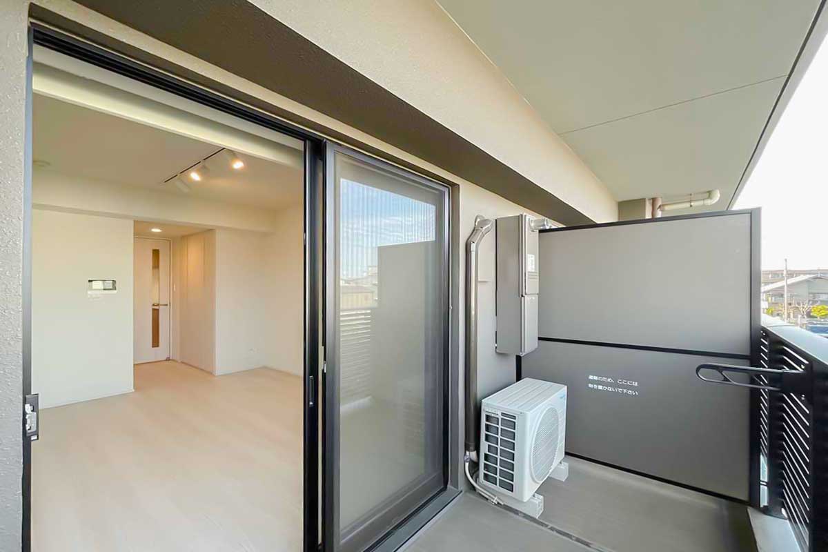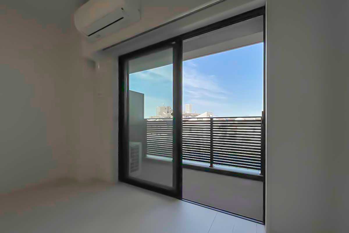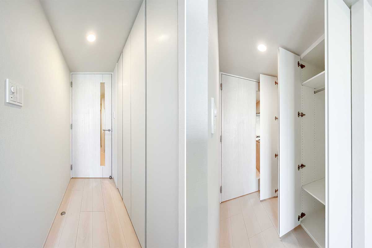 ドアを開けて少し廊下のような空間にクローゼットが設けられており、バルコニー以外の3面の壁を自由に使えます。