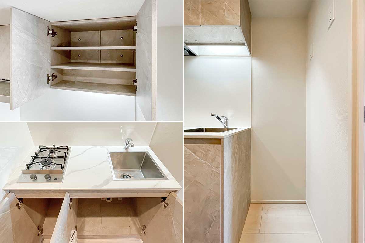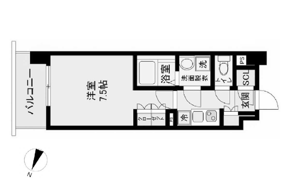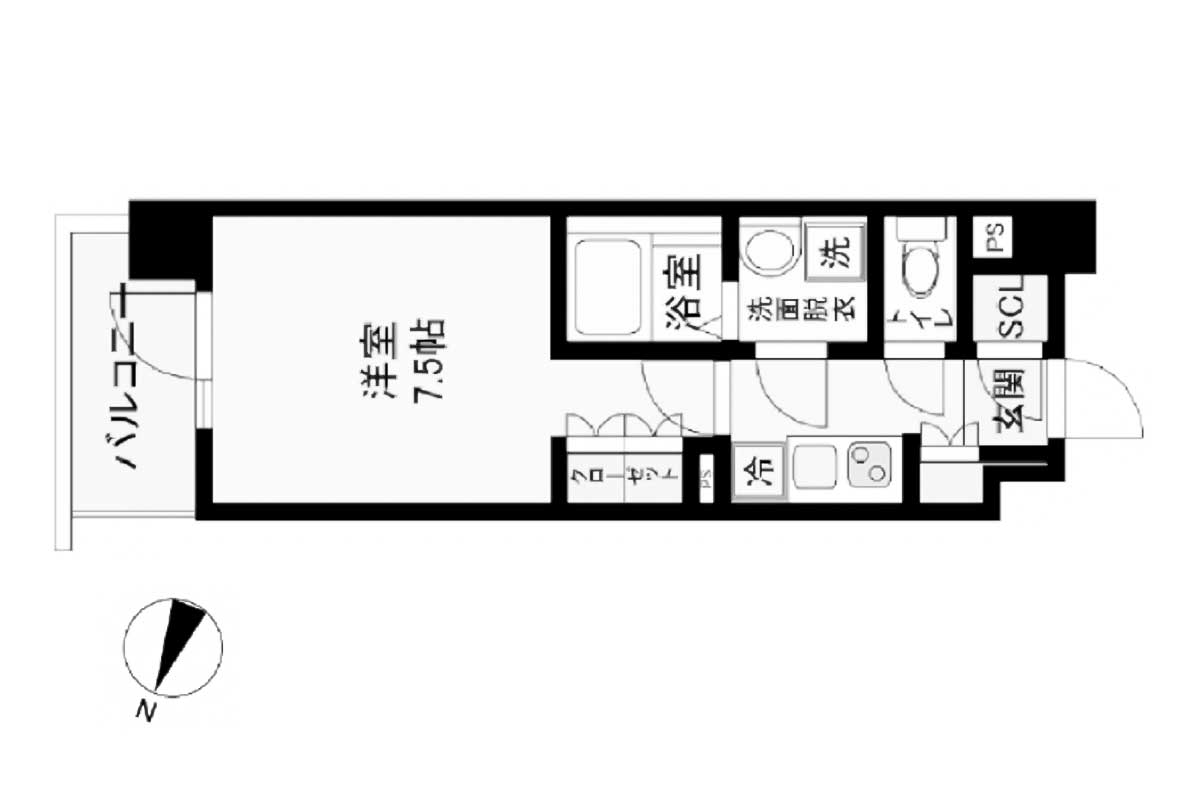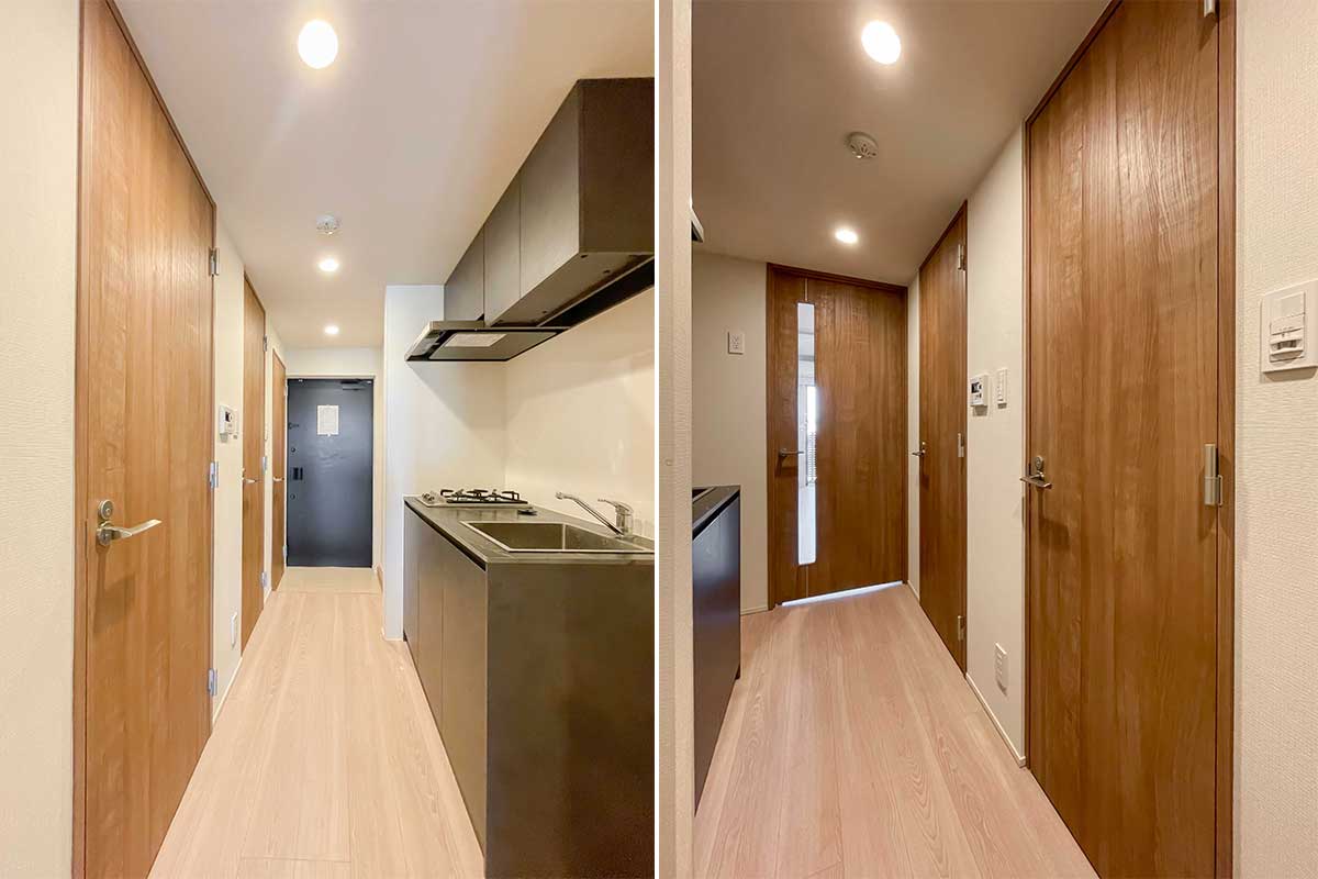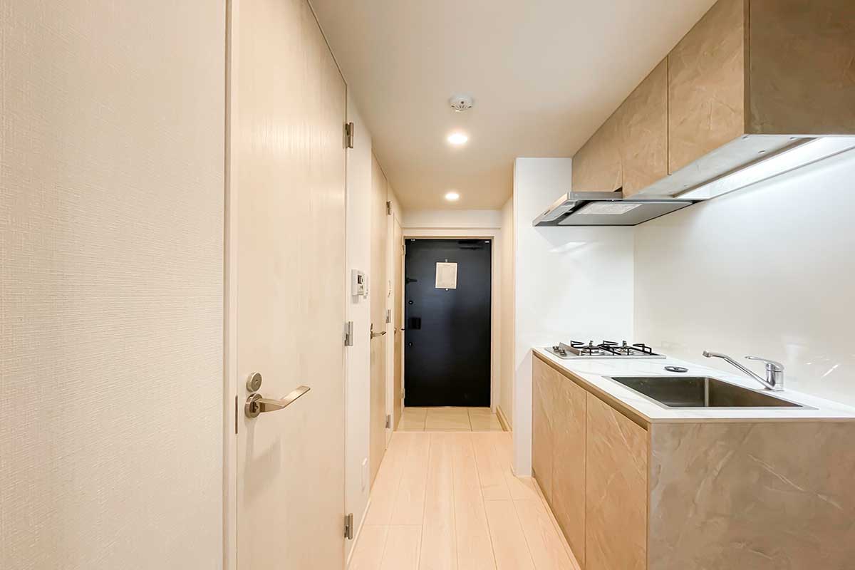 お部屋はシンプル1Kタイプ。ポイントは収納スペースの位置。