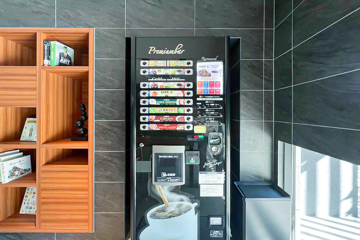 1階には共有ラウンジがあり、コンセントが繋げられ、作業ができるフリースペースになっていて、1杯100円で飲めるコーヒーやココアの販売機もありました。