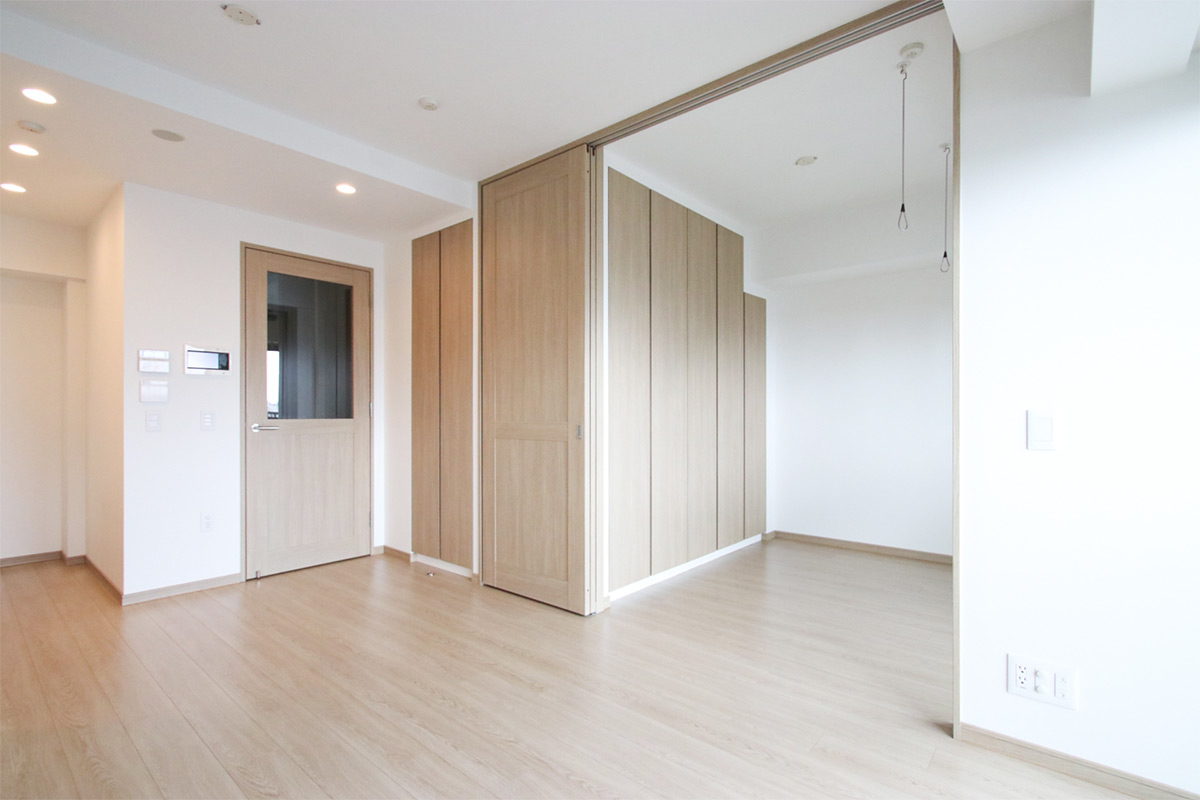 リビングとはスライドドアで仕切ることができるのでワンルームのように使ってもよさそうです。