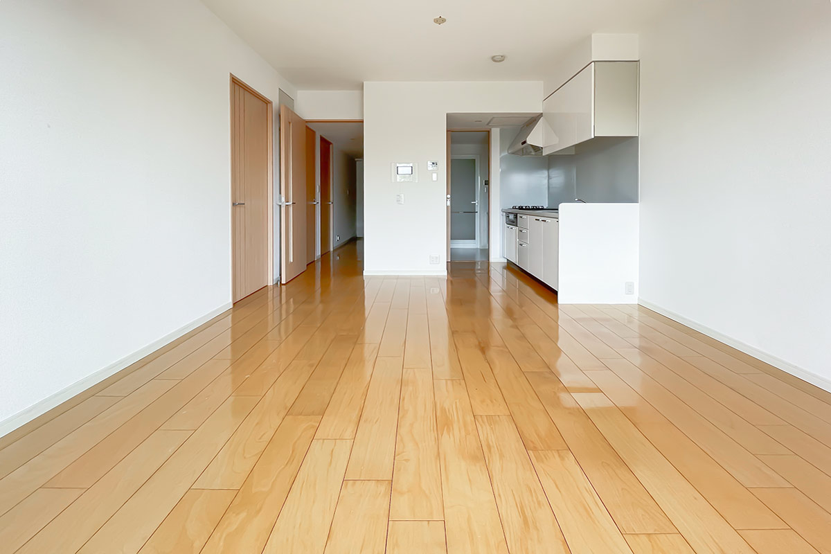 白い壁とナチュラルカラーの床材で、シンプルイズベストな内装です。