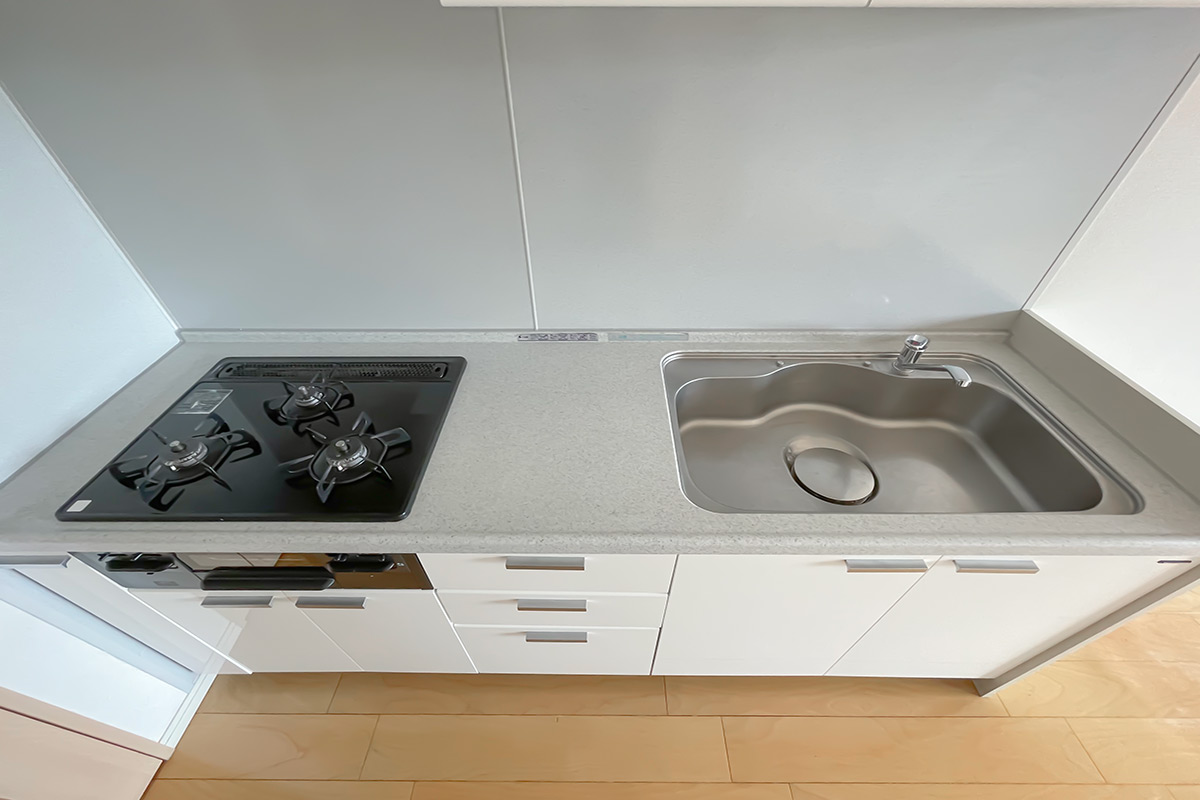 キッチンの奥には水回りがまとまっており、家事動線もスムーズでしょう。