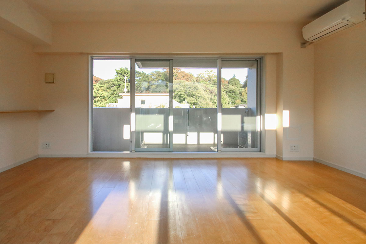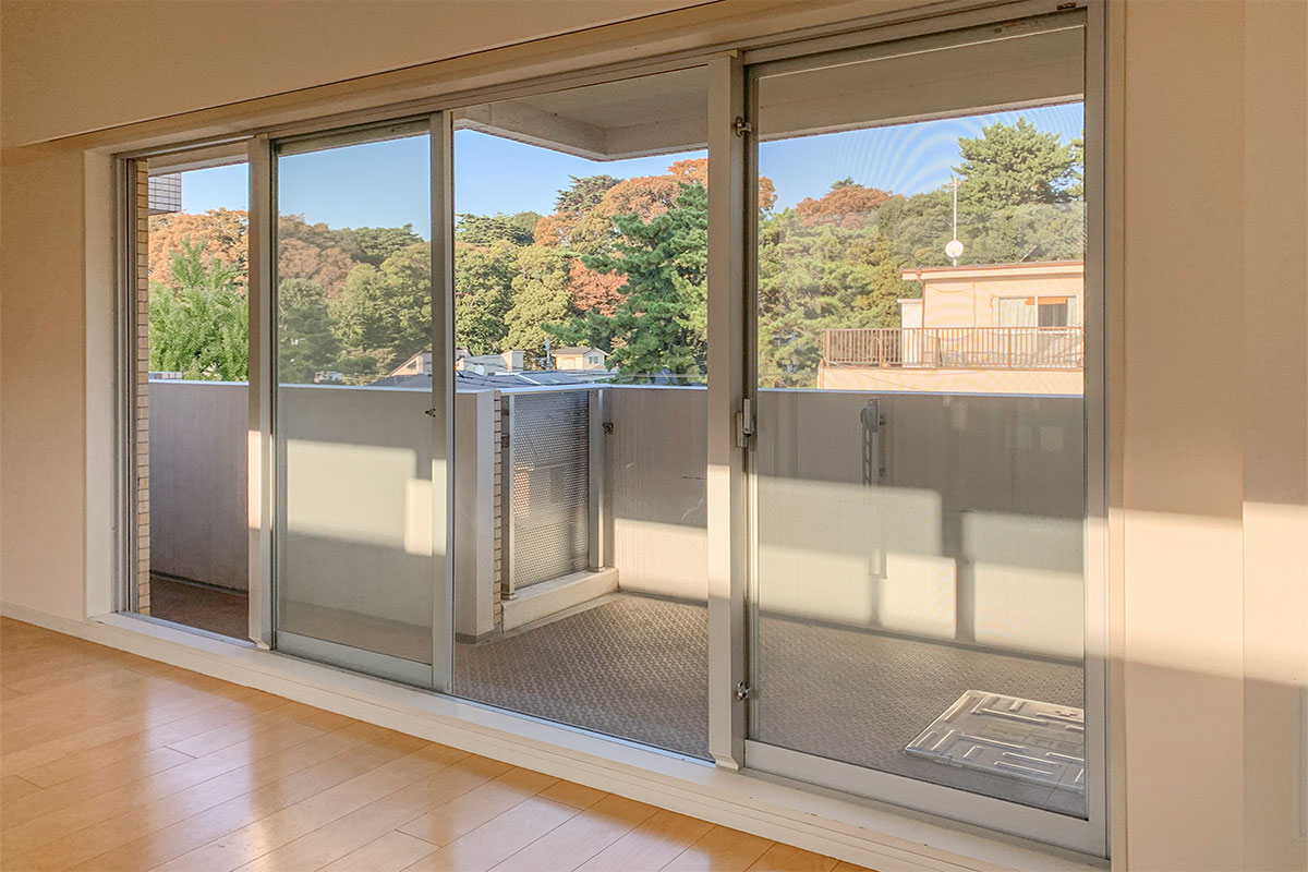 北西にあたる吹き抜け側にはサービスバルコニーが付いており、たっぷりと光と風を取り込むことができるお部屋です。