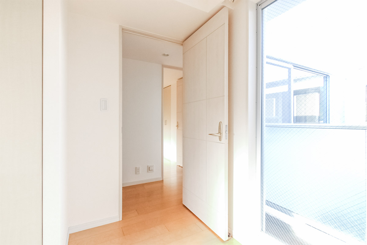 サイドにある扉はバルコニーに通じているので、換気等にも重宝しそう。