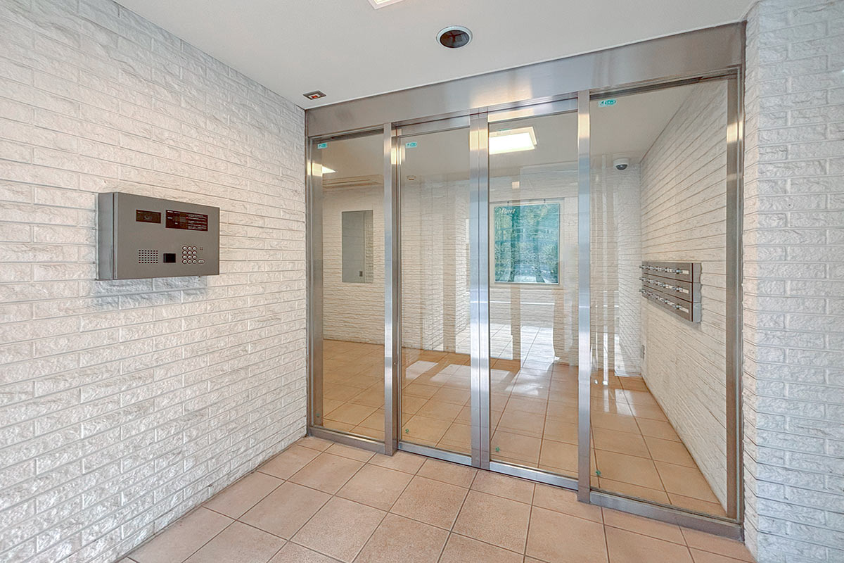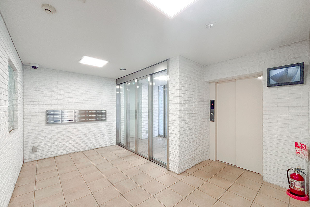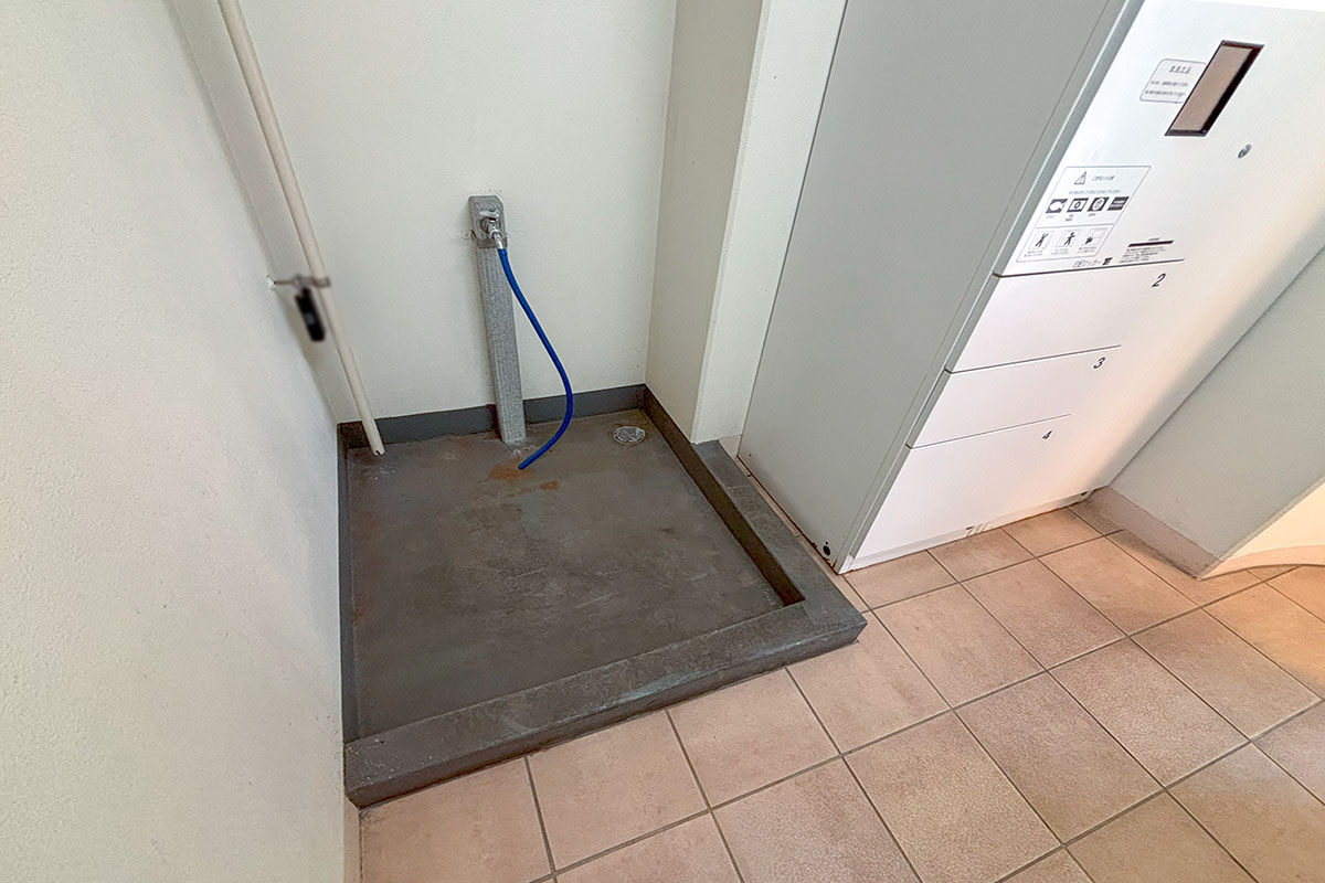 エントランスを入った集合ポスト奥にはペット用の足洗い場も併設。