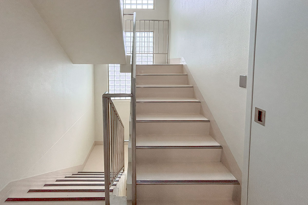 ブロックガラス側の窓は建物の吹き抜けに面しているので、降りそそぐ光も感じられてより明るい印象です。