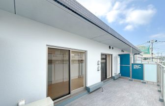 奥にはバルコニーもあり、外は住宅や小さな児童公園がありますが背の高い建物が少なく青空がよく見えました。