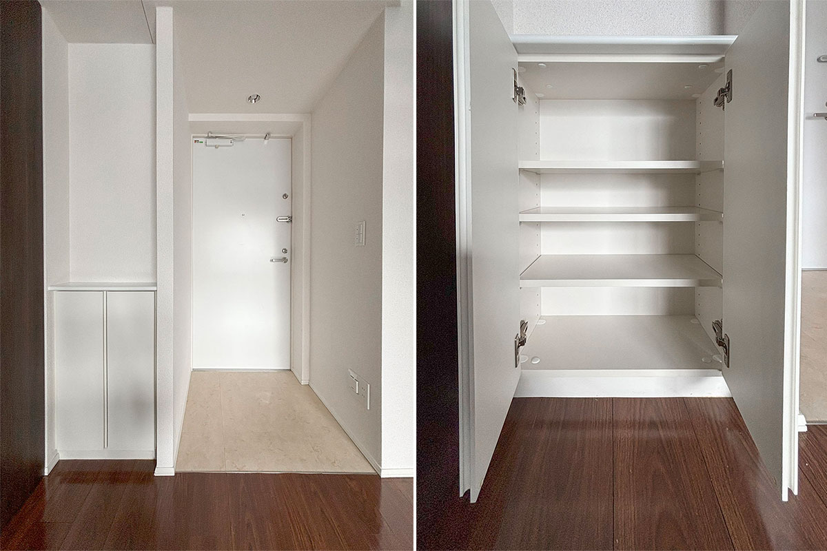 クローゼットや、シューズボックスなど収納スペースはこちらにまとまっています。