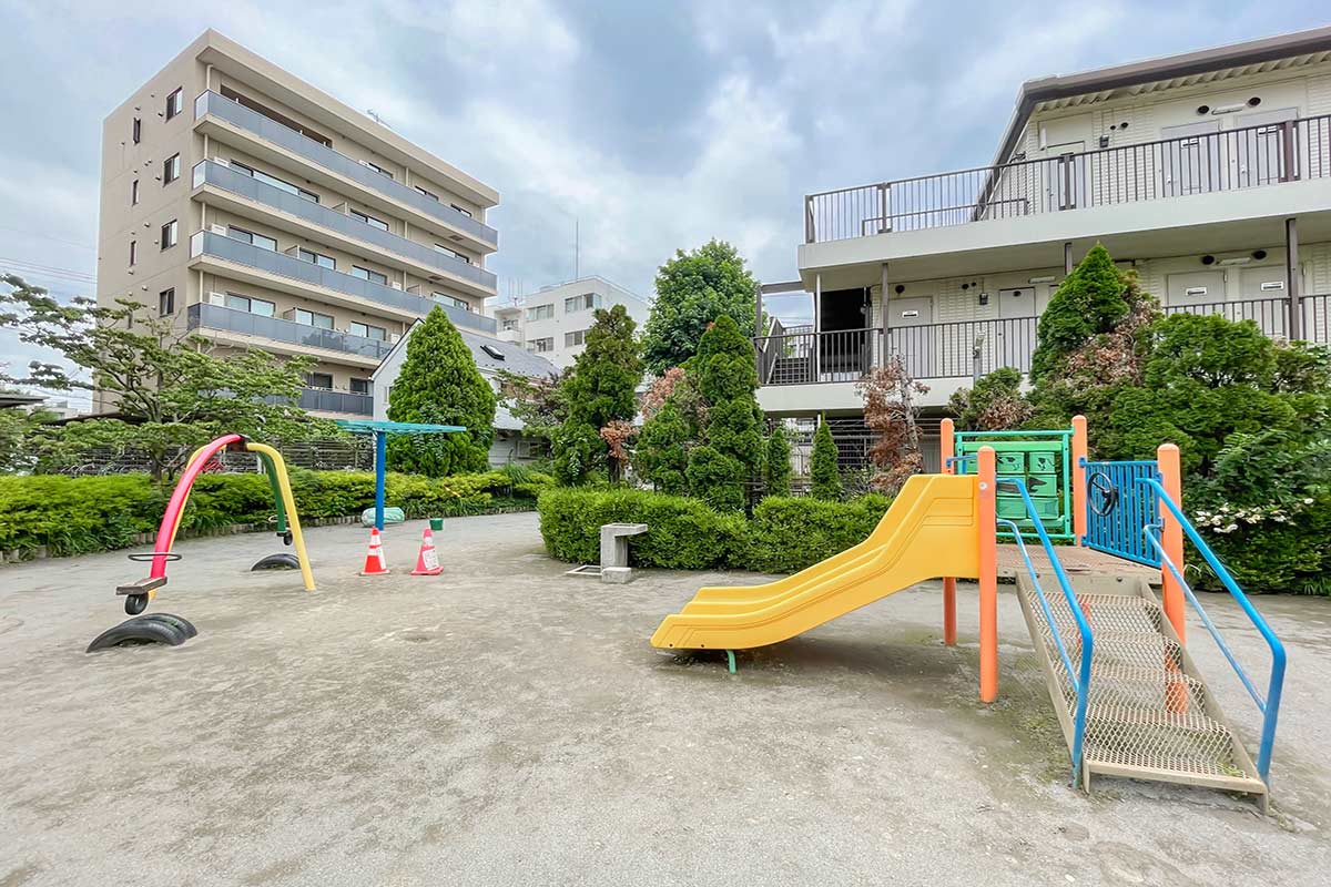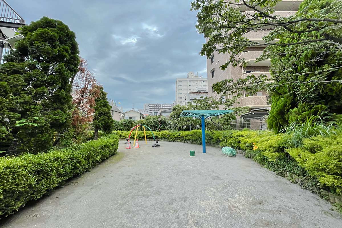 見えるのは、武蔵小杉や池上・蒲田の方面の街でしょうか。目の前眼下には小さな公園もありました。