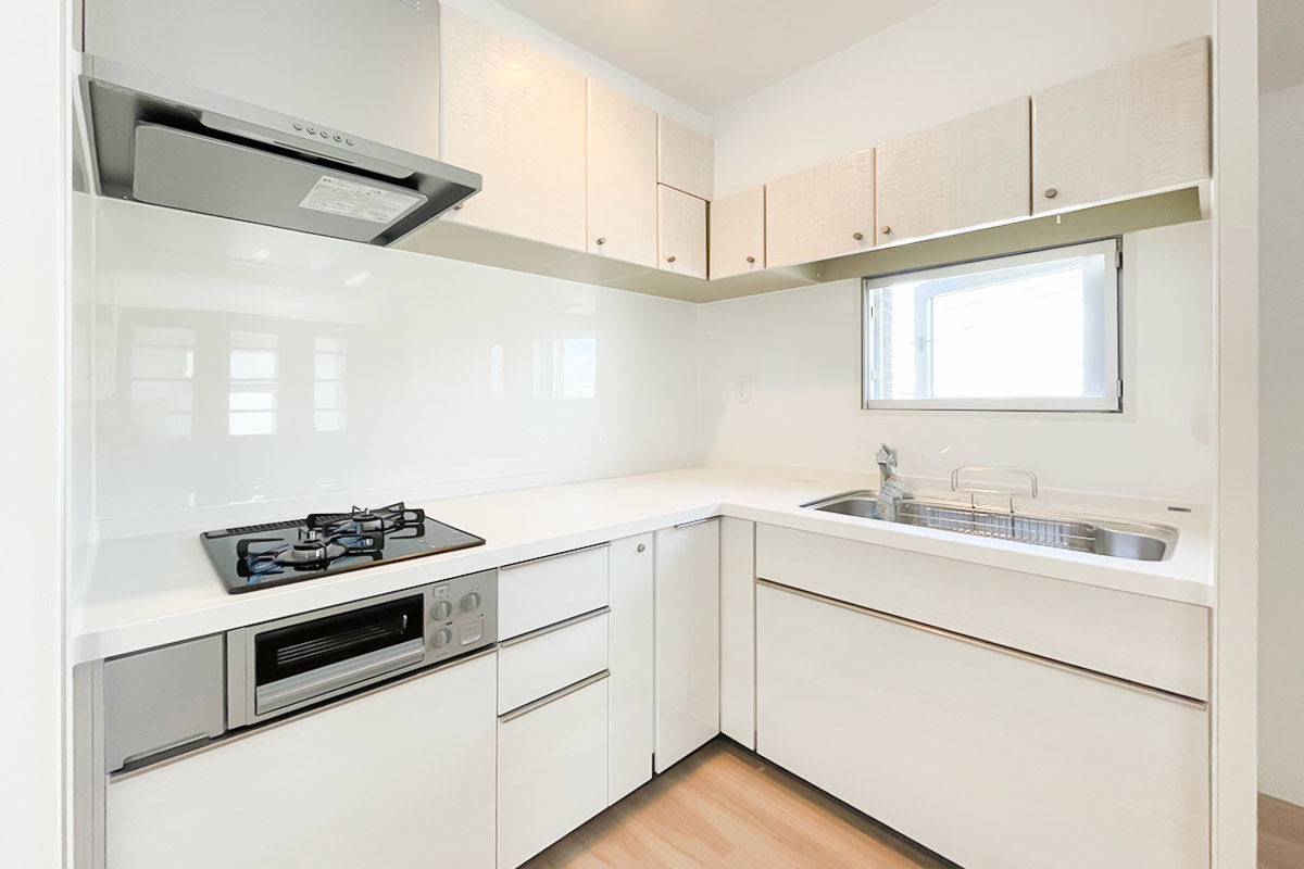 キッチンはL字で大きく、収納スペースもたっぷり!自炊派・料理好きの方にもおすすめです。