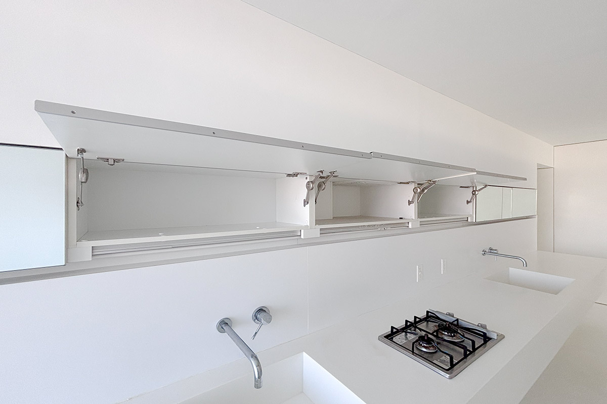 上部のミラー部分はすべて収納になっていて、パントリーの心配もご無用!