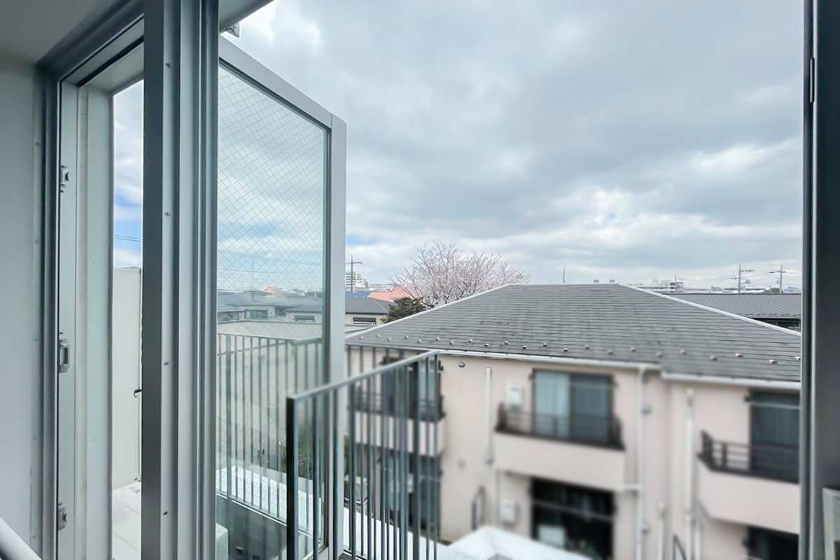 2面採光でどちらもワイドな窓で、明るく開放的な印象です。3階ということもあり、ある程度開けた眺望が広がります。視線の先にはちょっぴり桜も見えていました◎