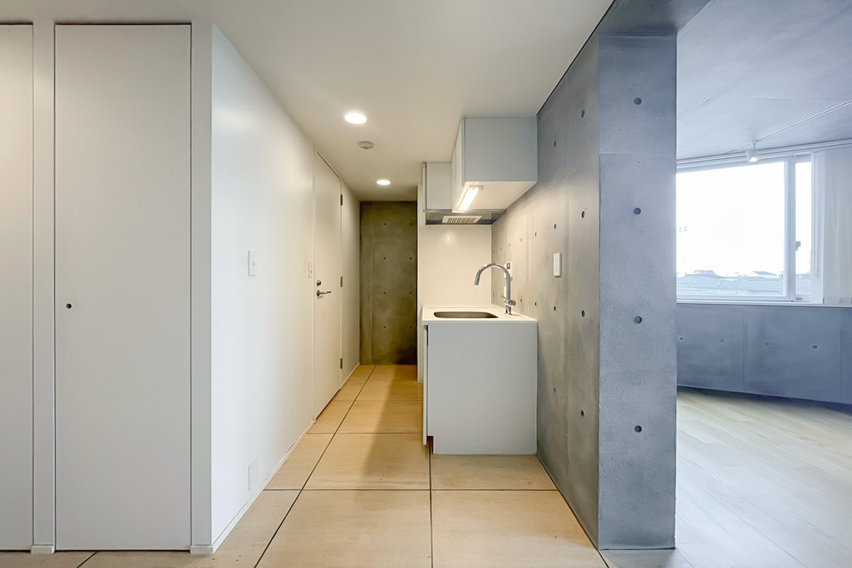 水回りやキッチンといった空間はコンパクトにまとまっている分、専有面積に対して居室の空間は広々14.6帖+土間。