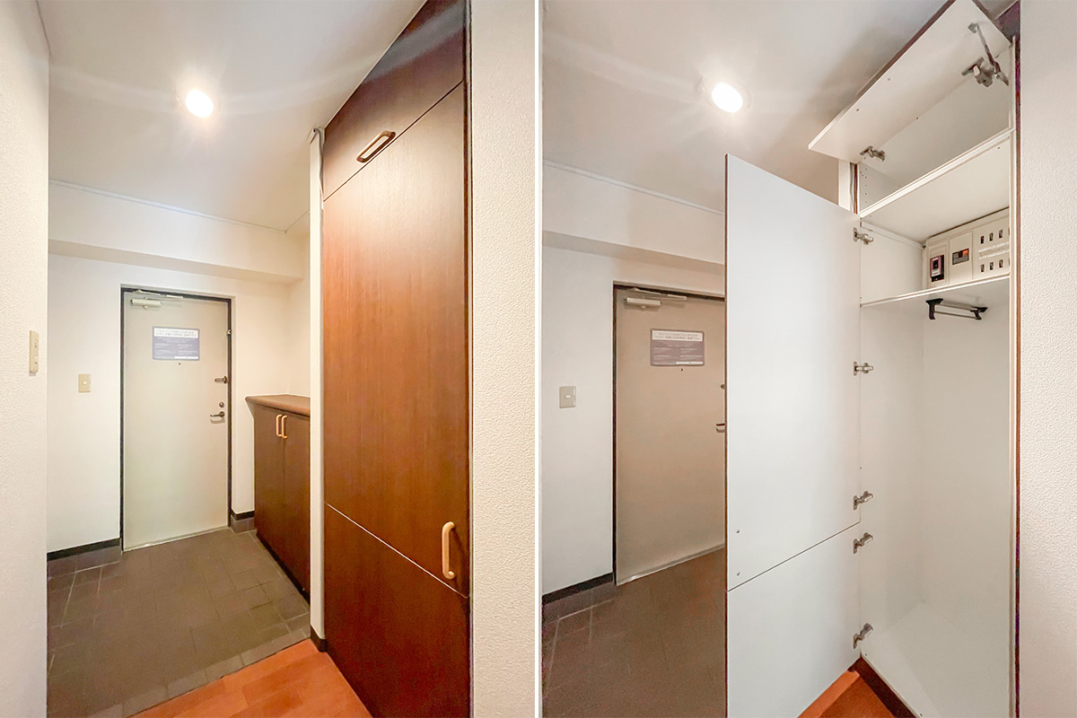 玄関には靴箱の他にコート掛けに使えそうなクローゼット付き◎