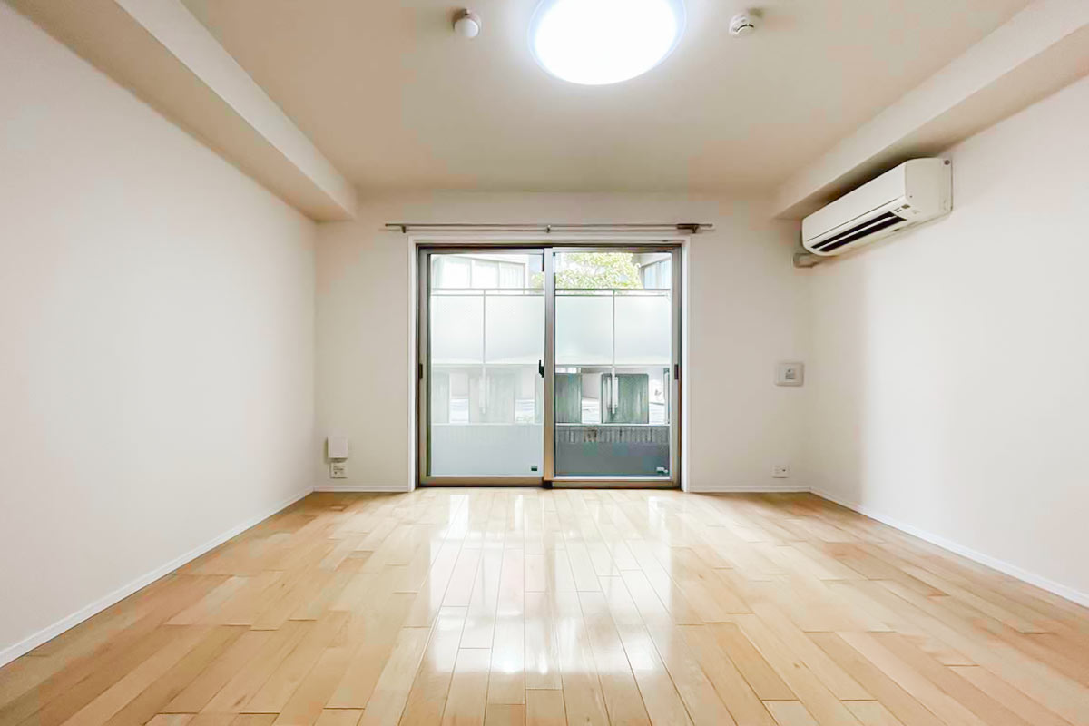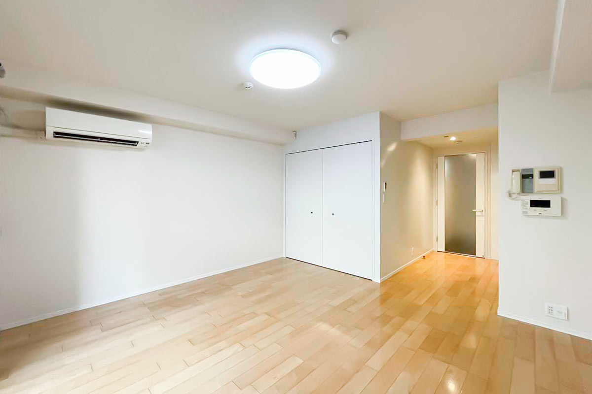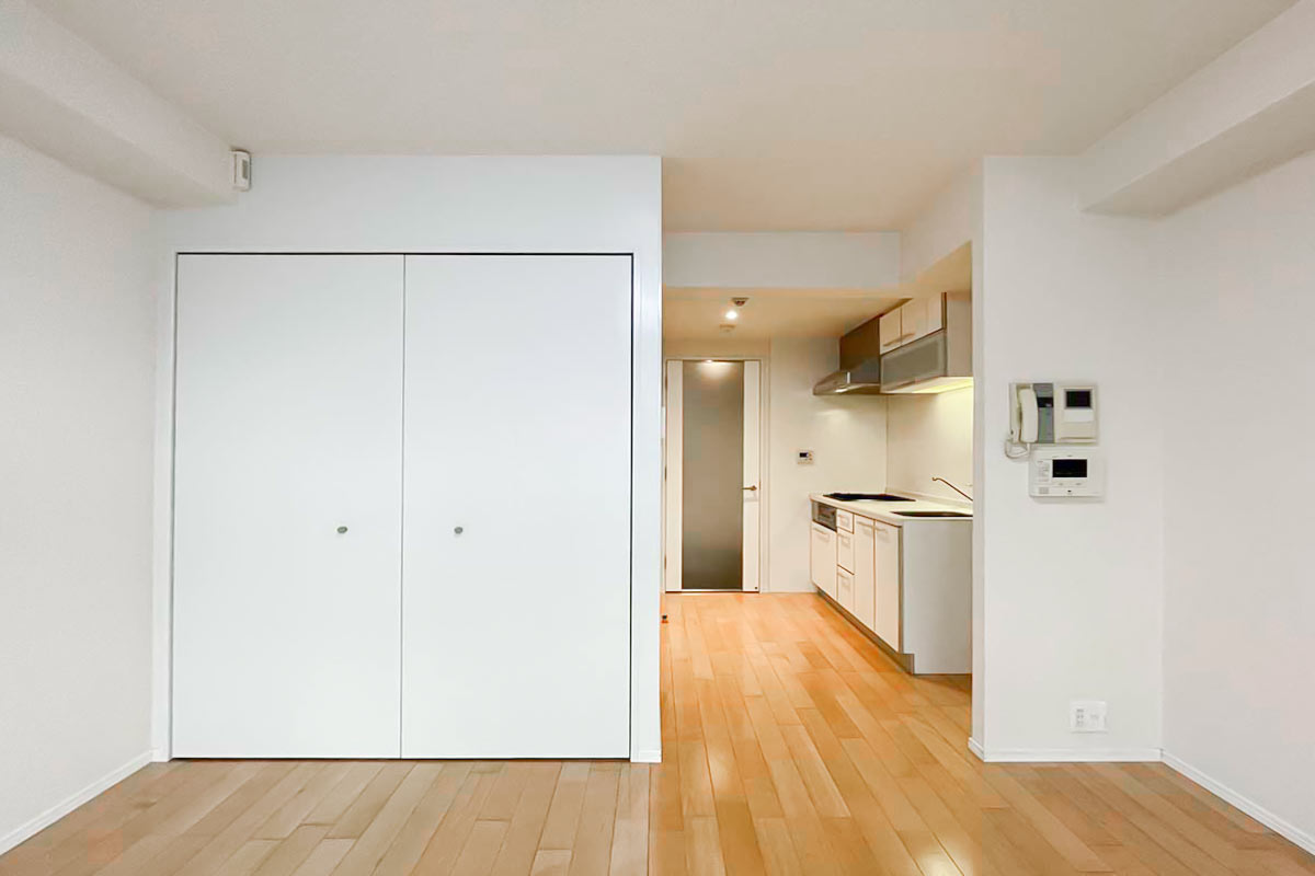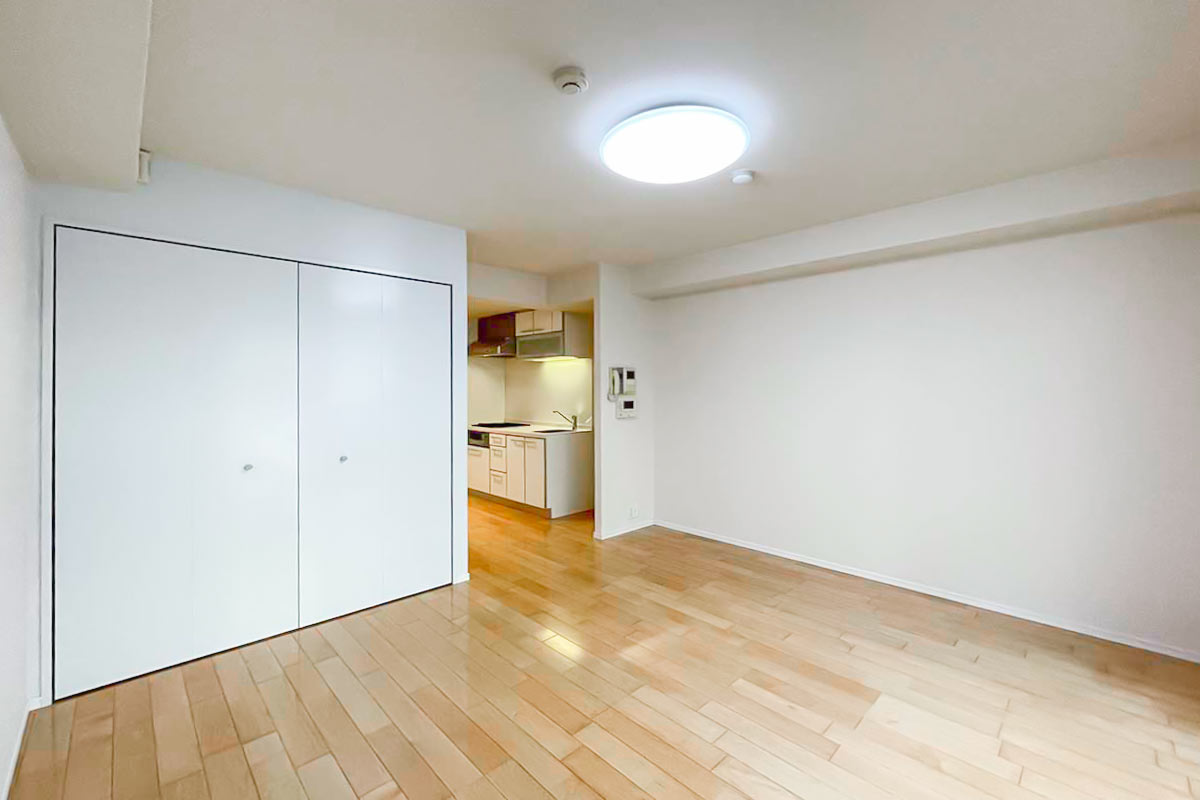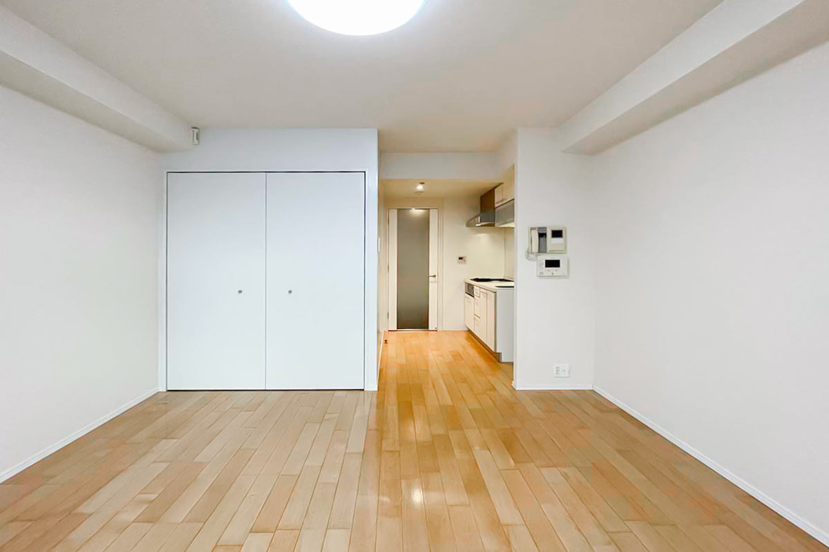 凹凸少ない形で奥行よりも幅がワイドな形のおかげでしょうか、平米数からイメージするよりも部屋は広く感じました!