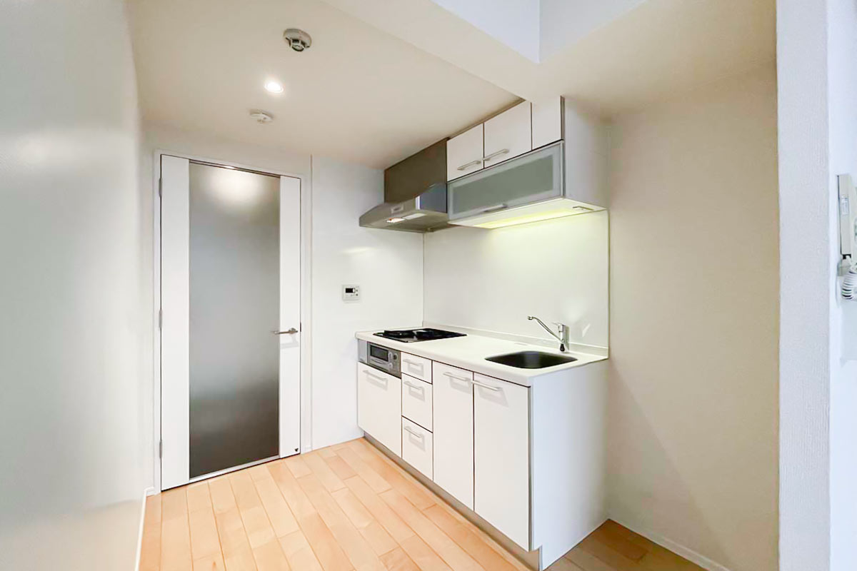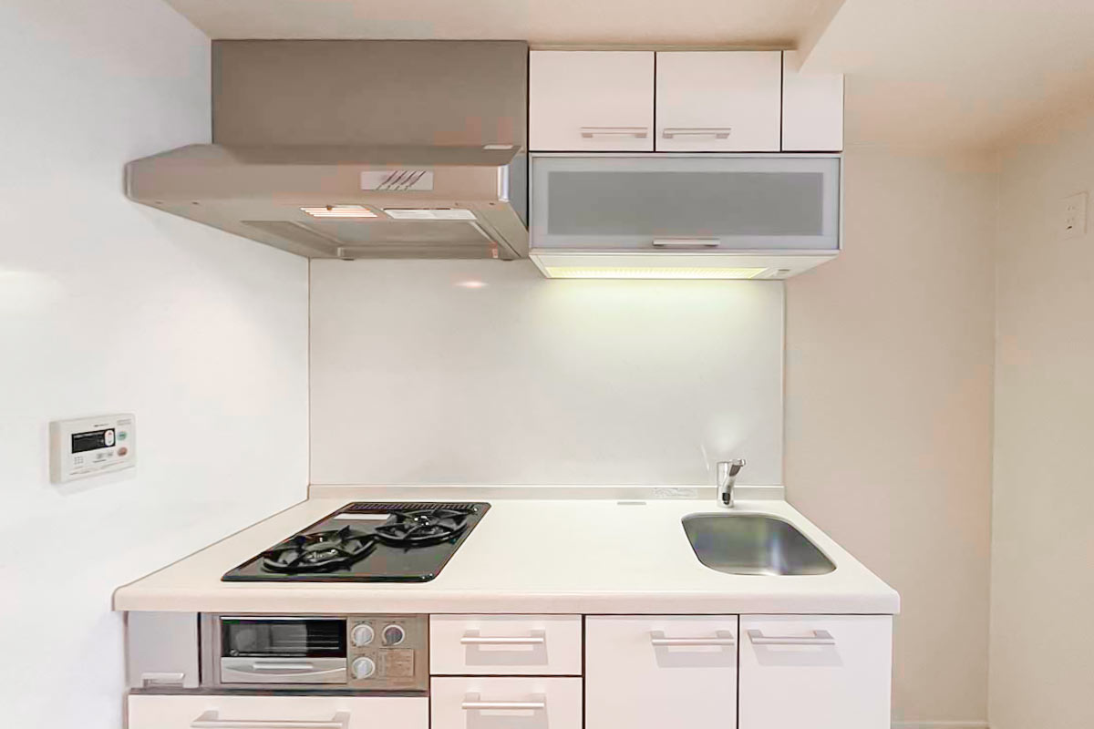 キッチンのシンクはややコンパクトなのですが、収納は上下にたっぷり。