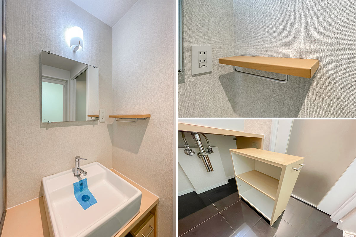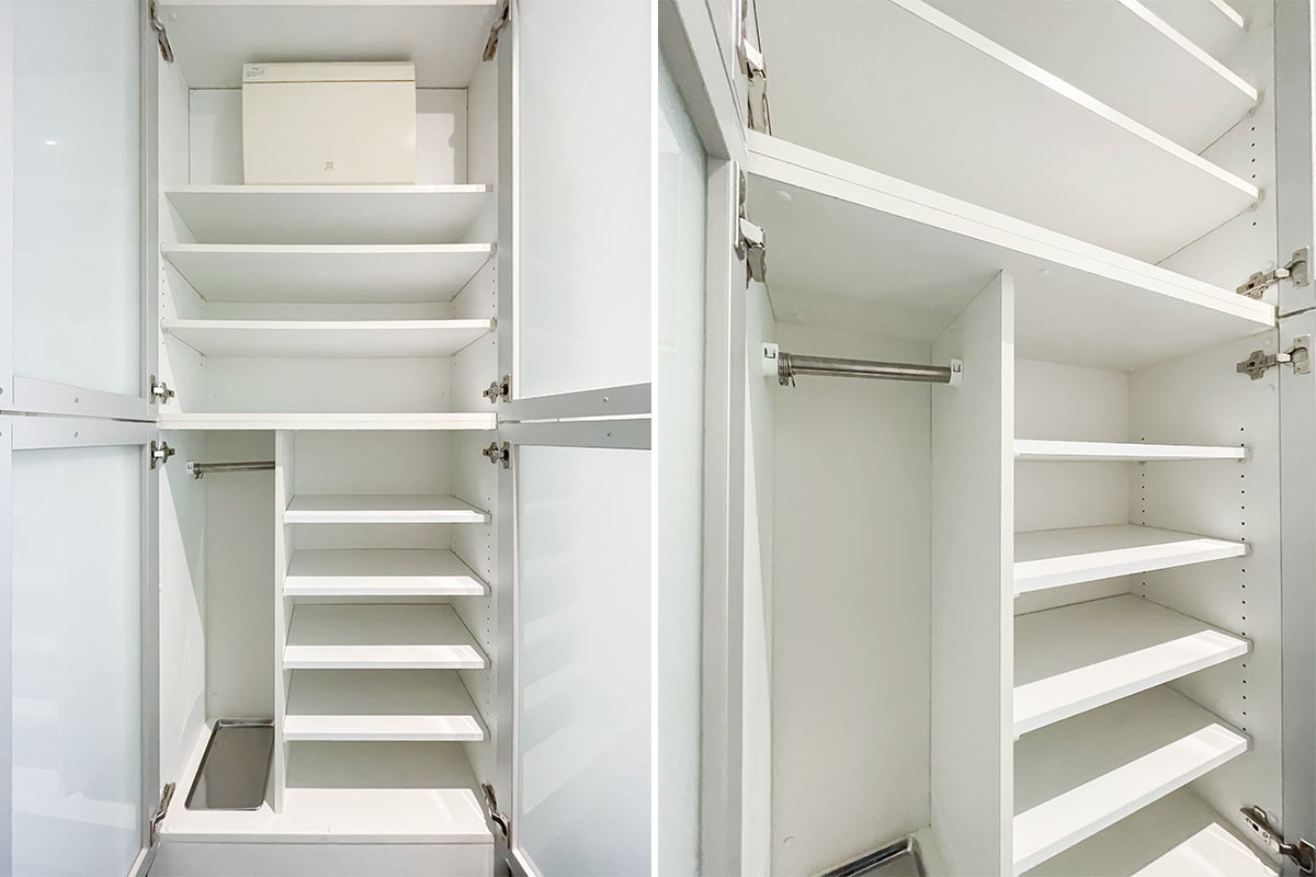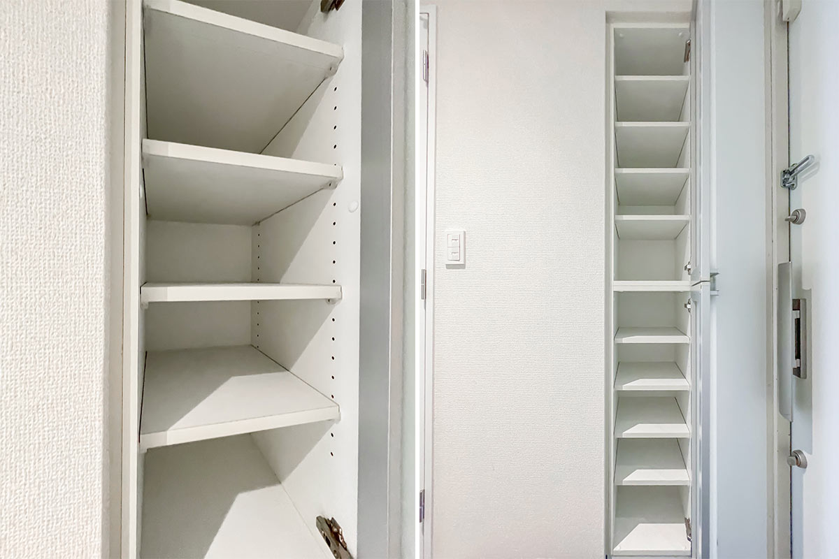 棚の高さは自由に変えられるので、ストック用品の収納に活用しましょう。