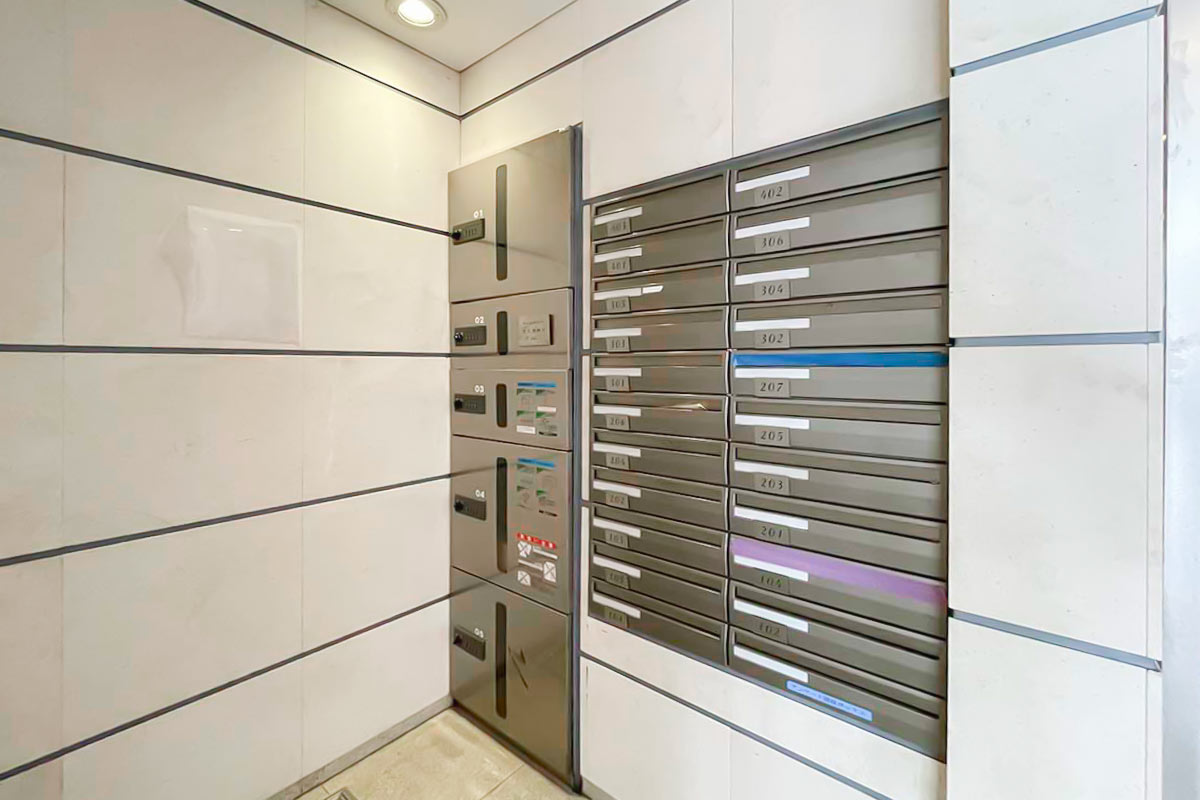 エアコン、B.T別室、モニター付ドアホン、独立洗面化粧台、照明器具、都市ガス、エレベーター、温水洗浄便座、追焚機能、浴室乾燥機、システムキッチン、インターネット光、CATV、収納スペース、オートロック、宅配ボックス、敷地内ごみ置場、デザイナーズ、角部屋、駐輪場