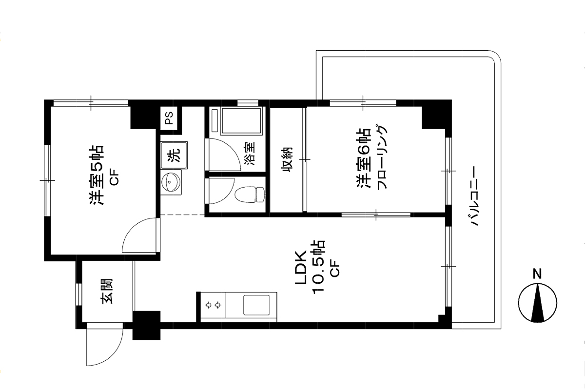 現在募集中のお部屋は3階部分の2LDKタイプ。