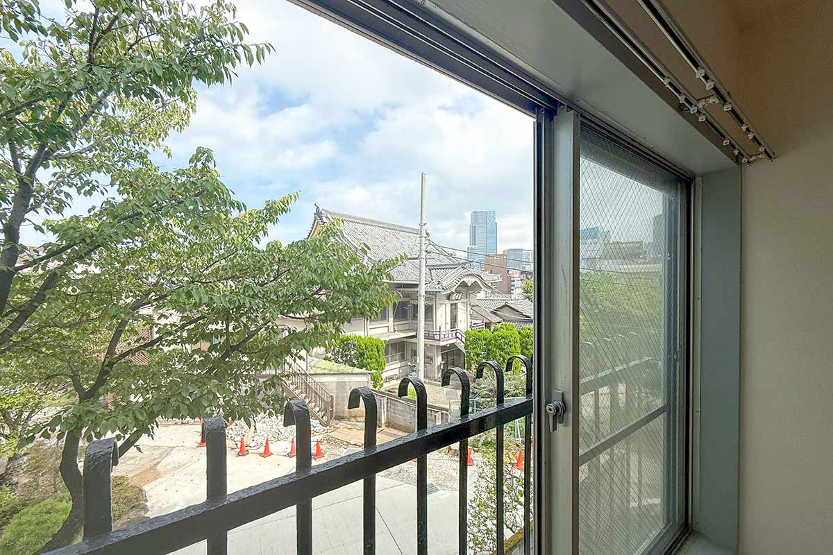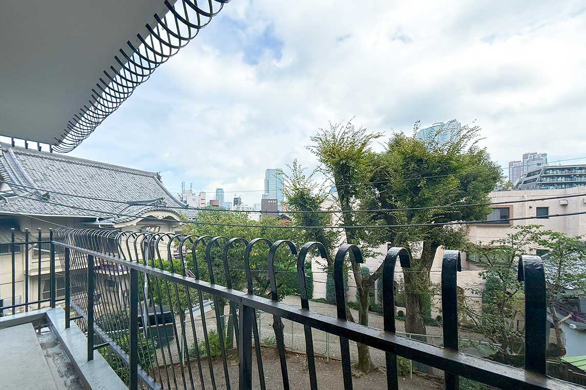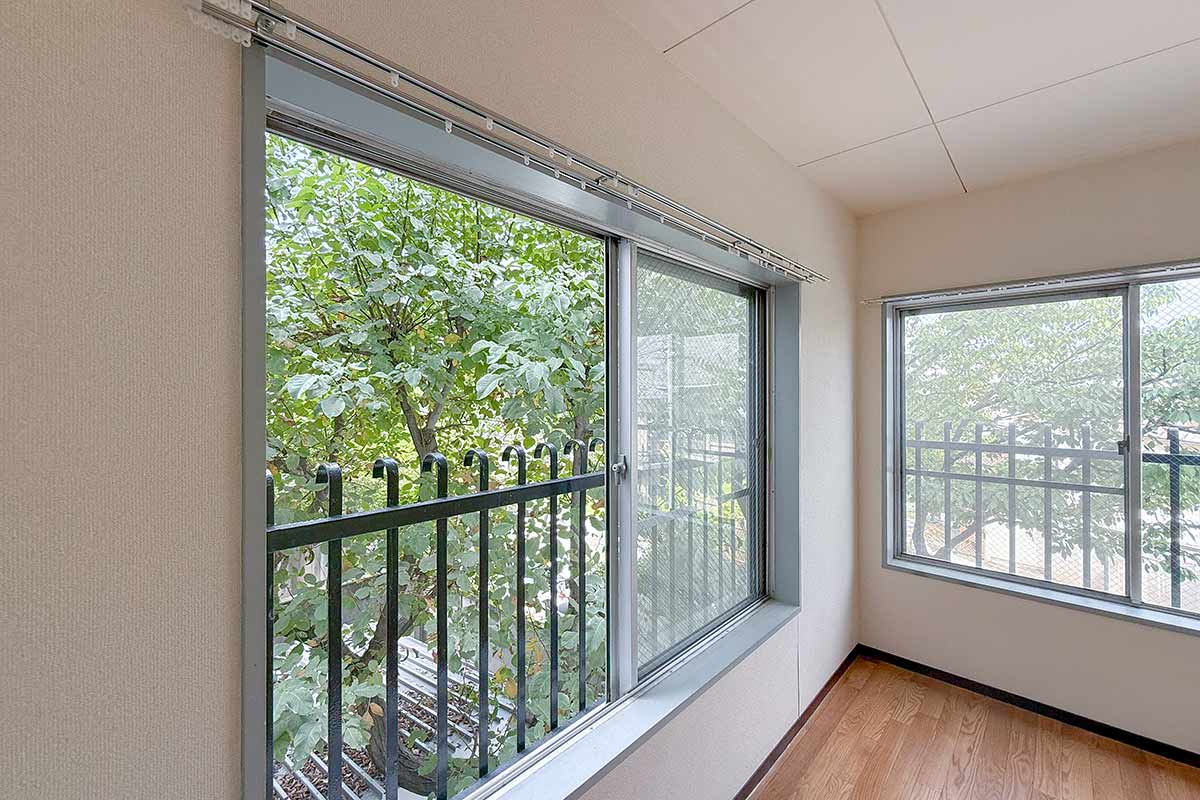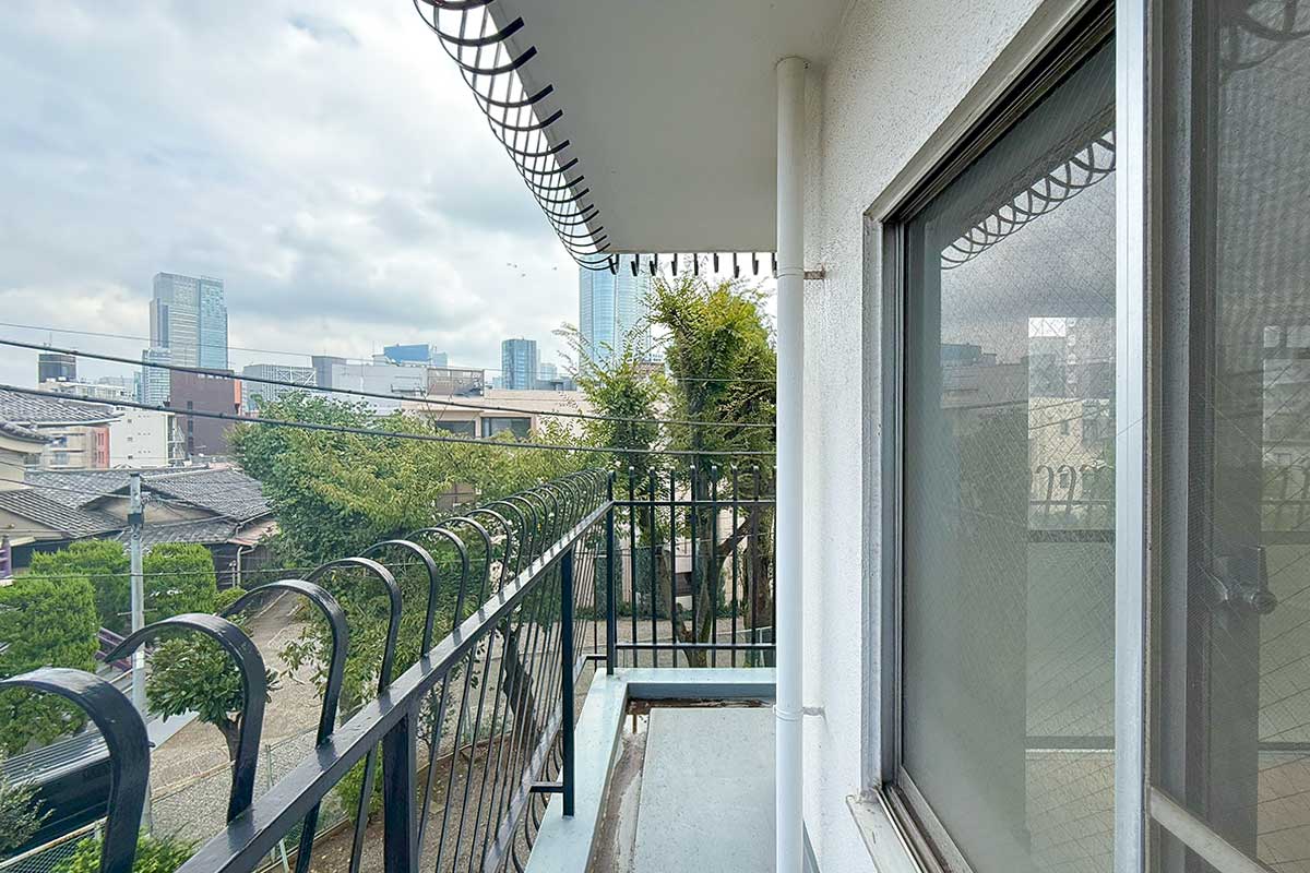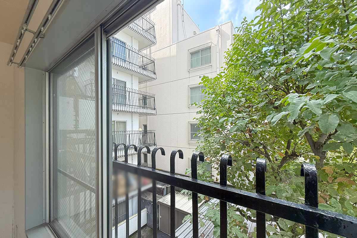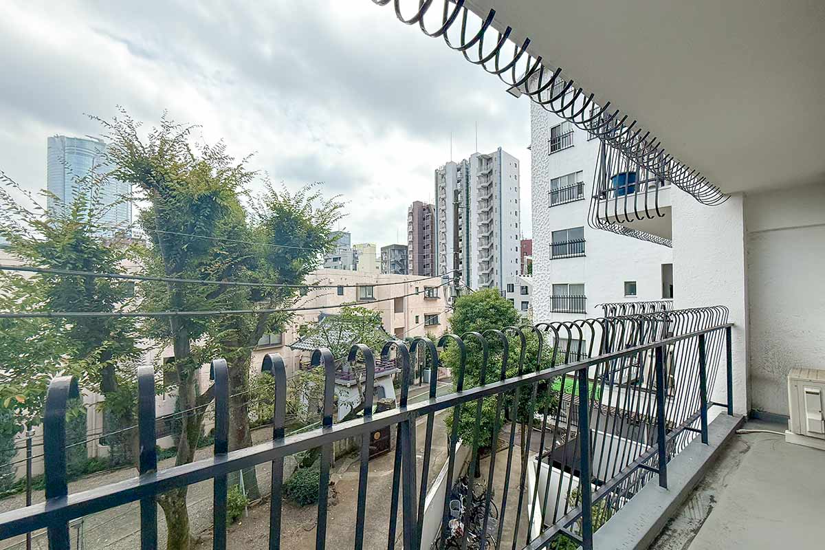 お隣の6帖の洋室とリビングを囲むL字型のバルコニーには秀和レジデンスの特徴のアイアンフレーム。
