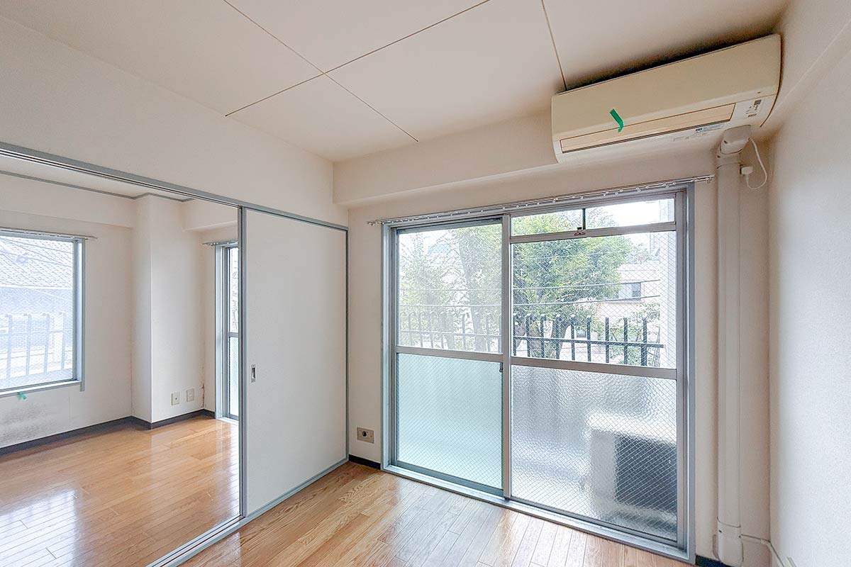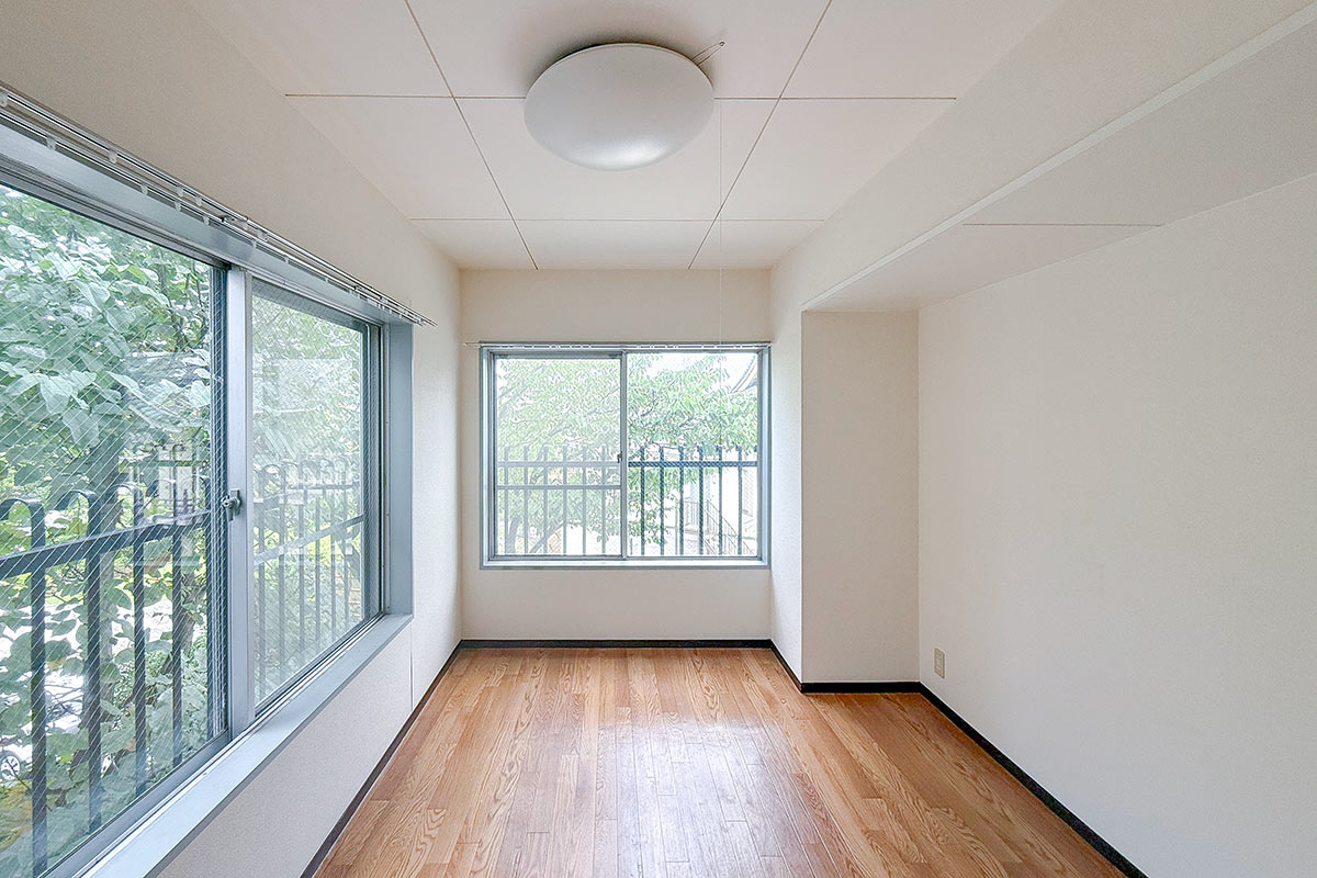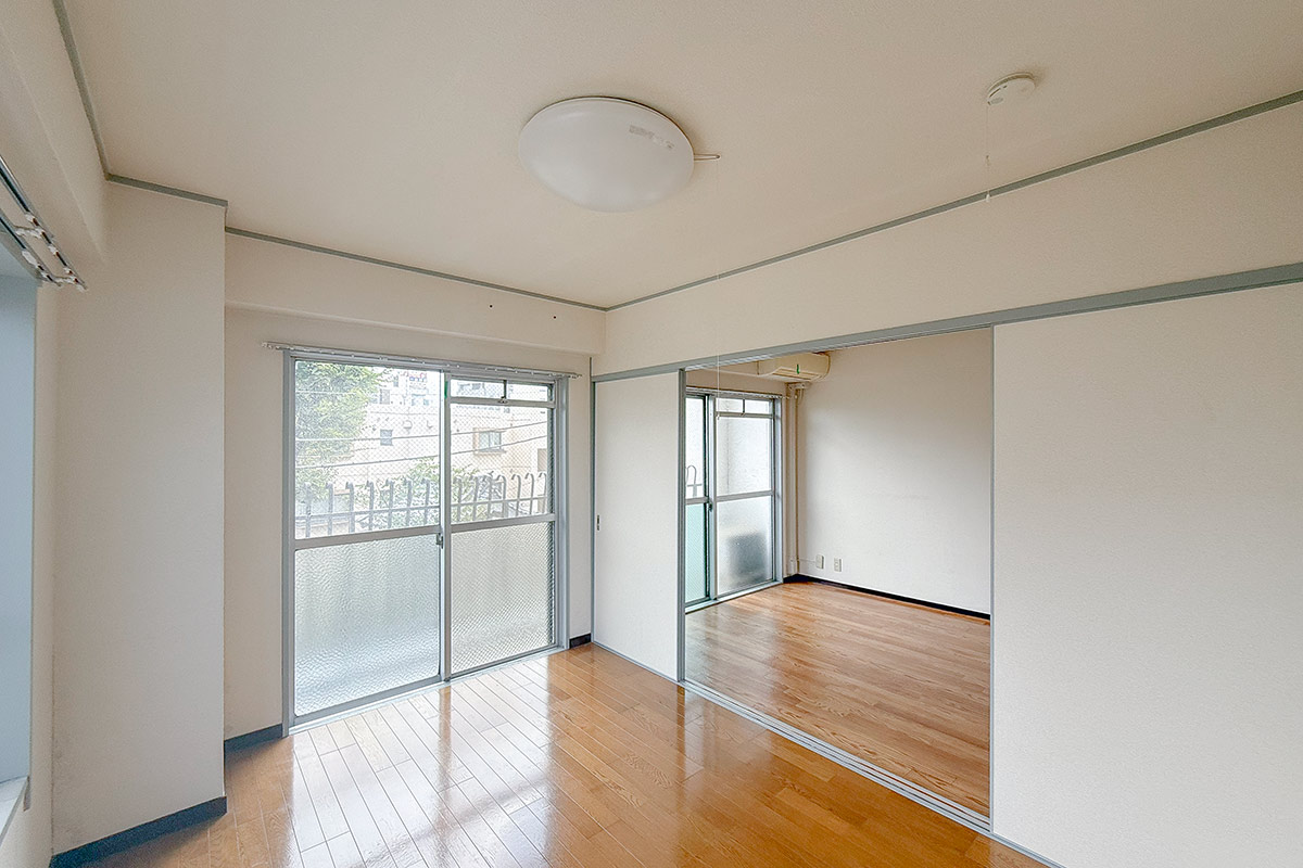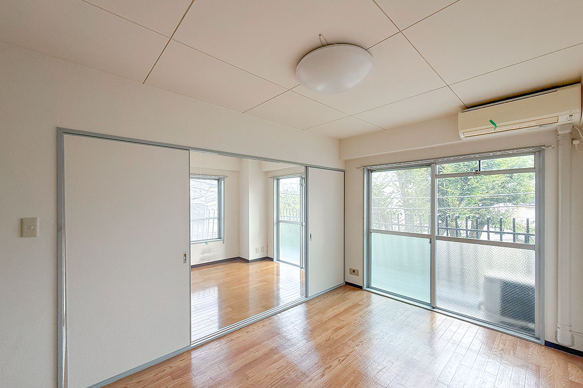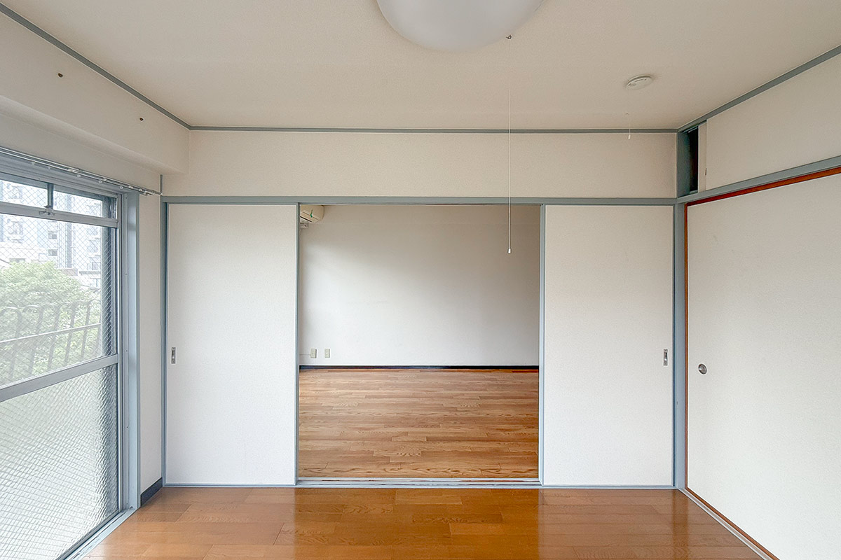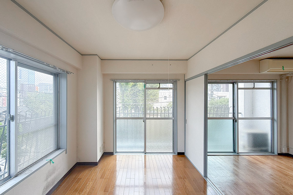お隣の6帖の洋室とリビングを囲むL字型のバルコニーには秀和レジデンスの特徴のアイアンフレーム。