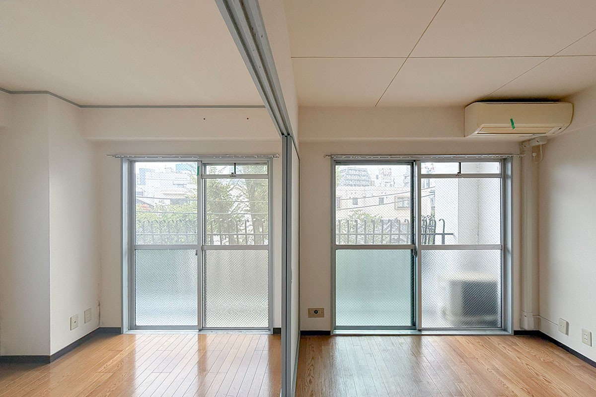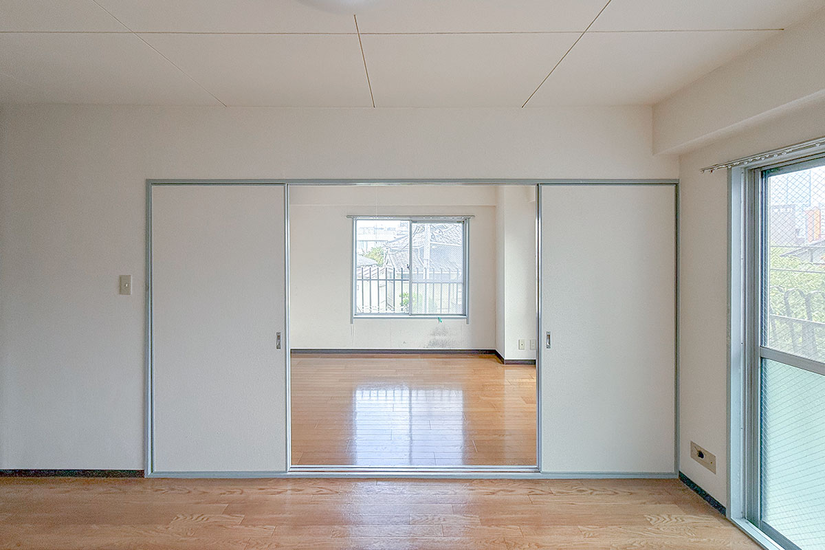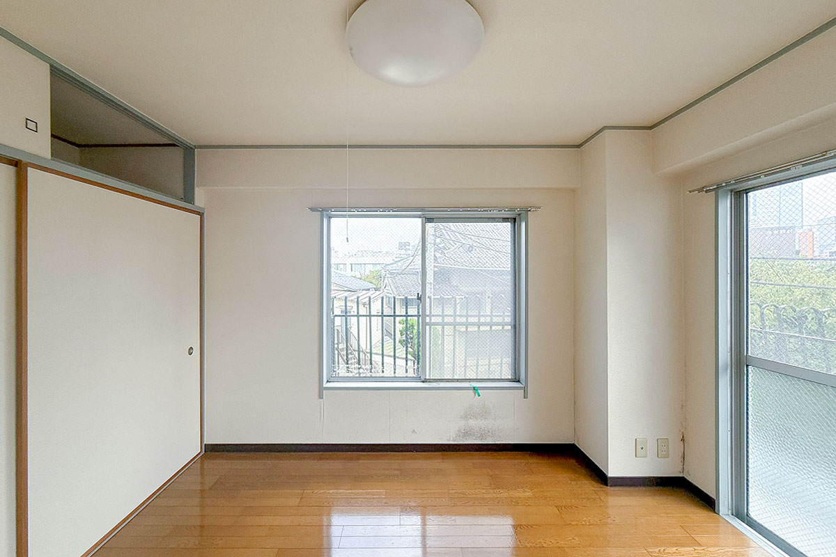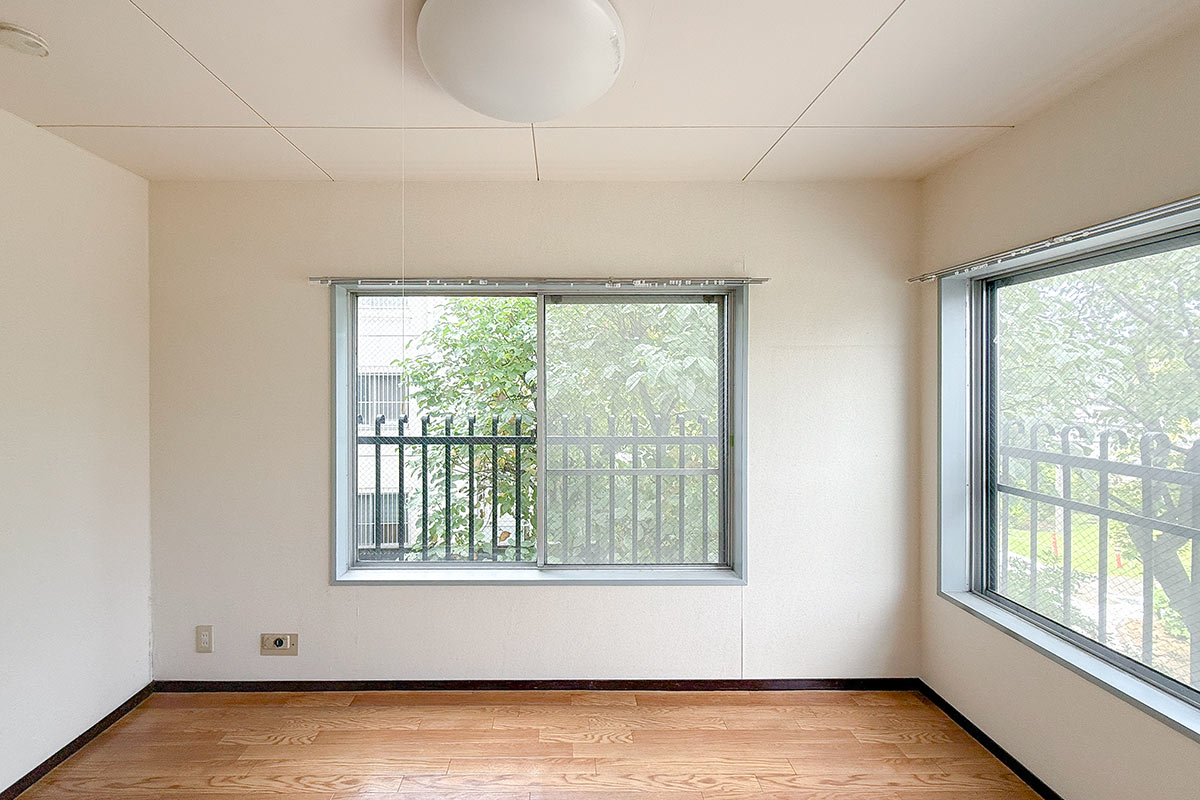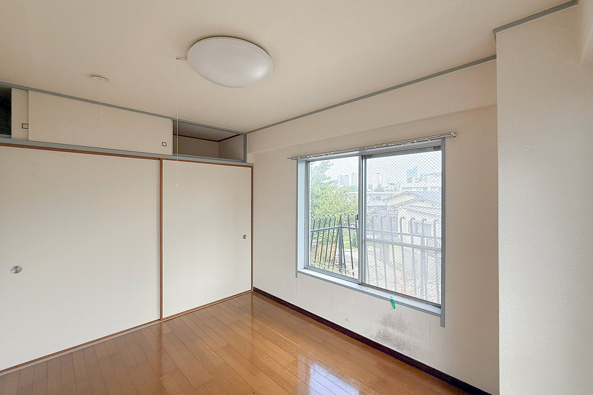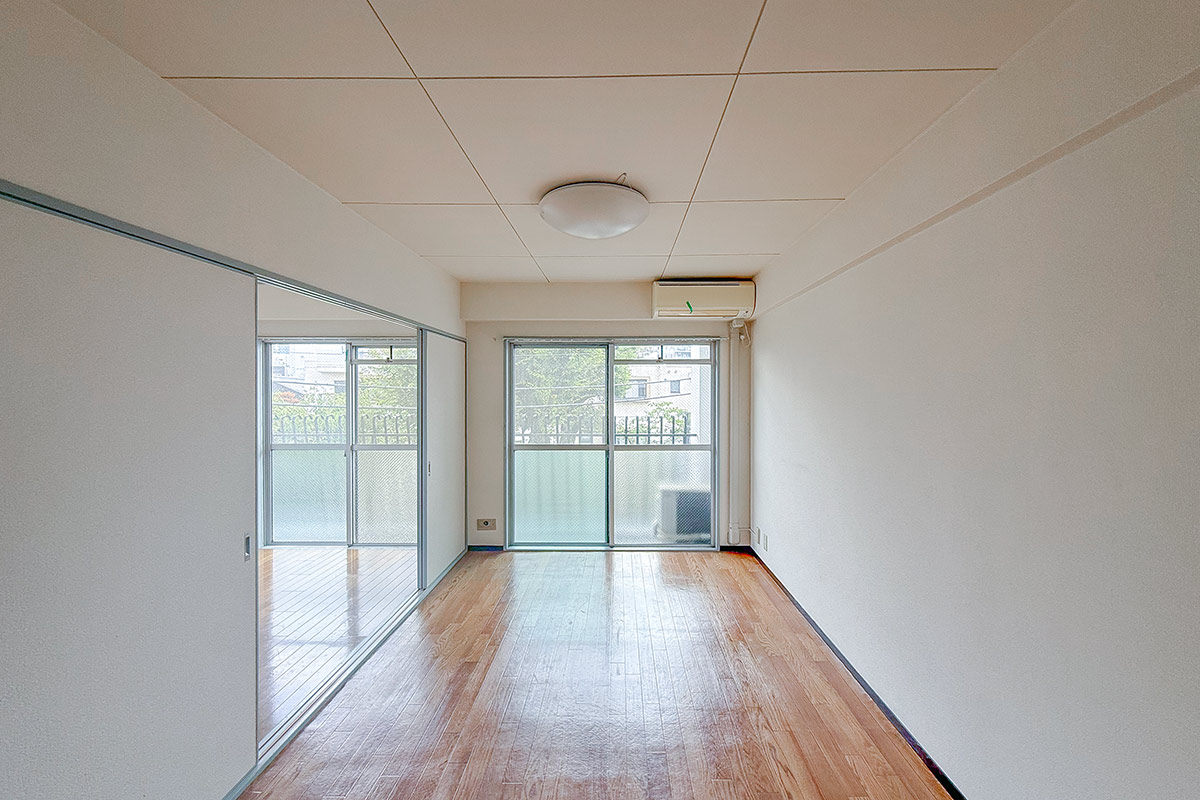 お隣の6帖の洋室とリビングを囲むL字型のバルコニーには秀和レジデンスの特徴のアイアンフレーム。