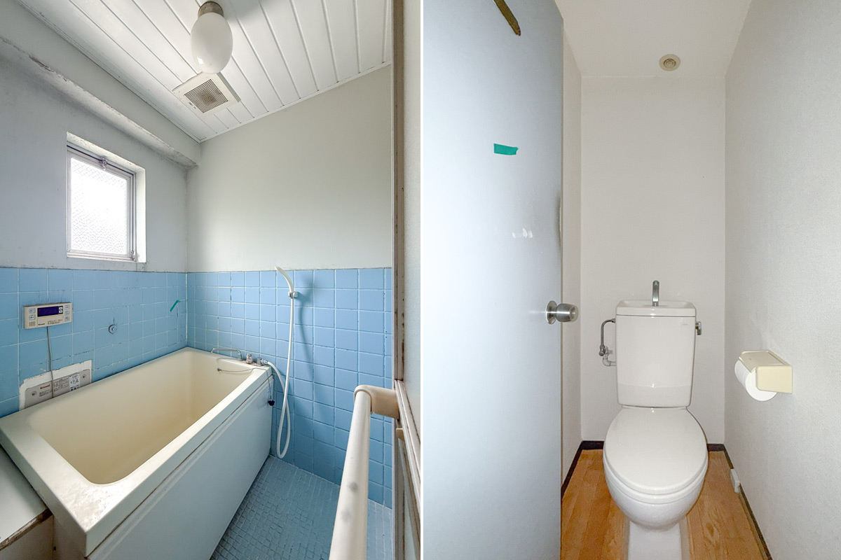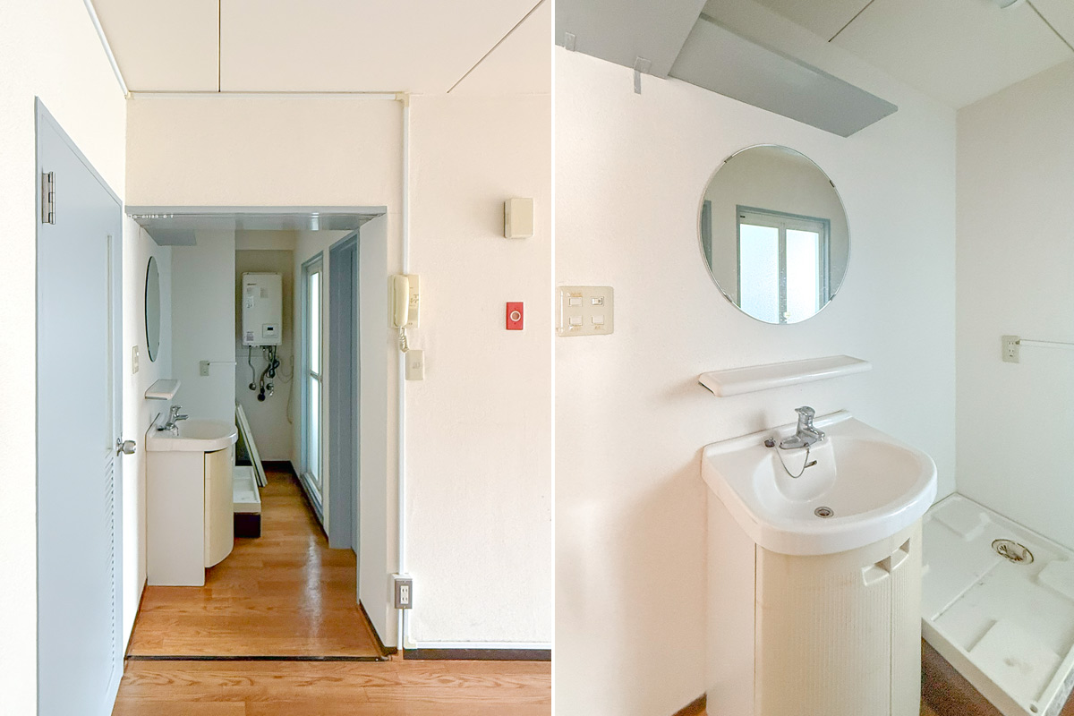 バストイレは別、丸みフォルムの洗面台や鏡も味わいを感じます。