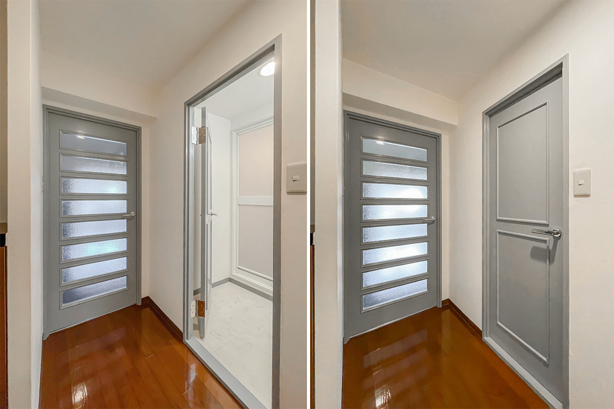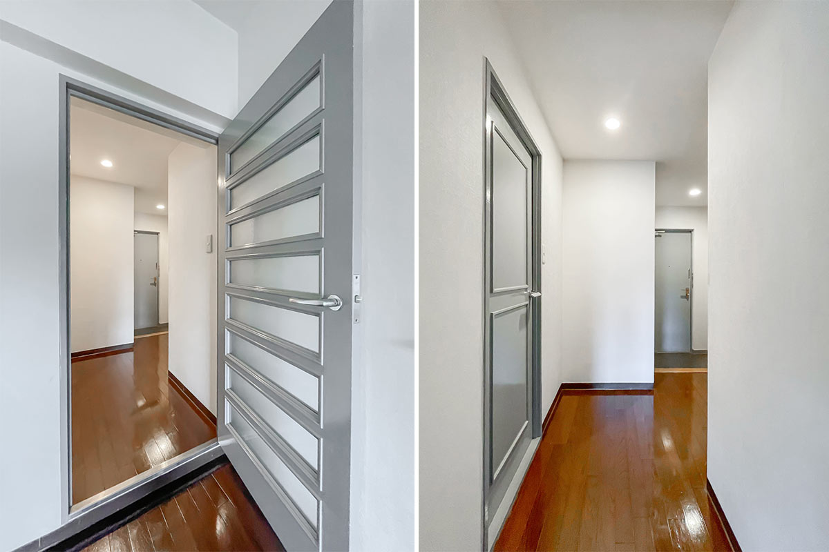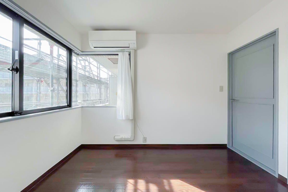 爽やかブルーの建具とL字窓のレトロ物件。
