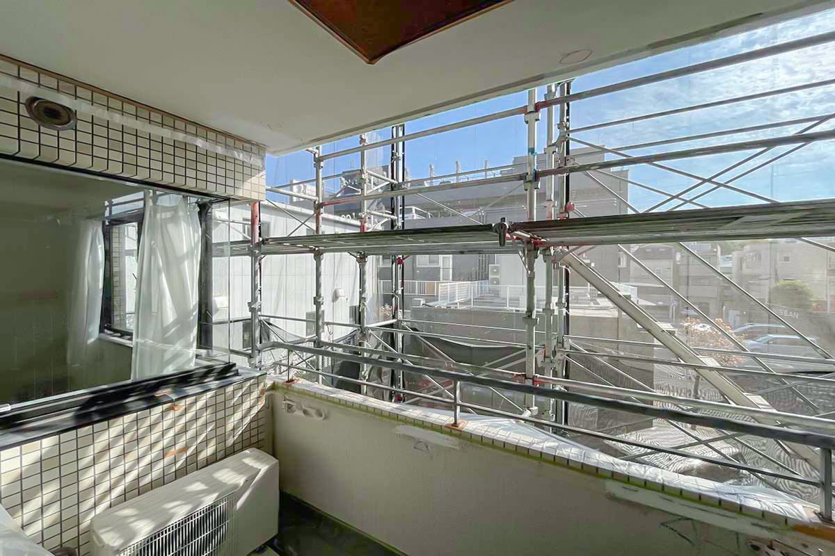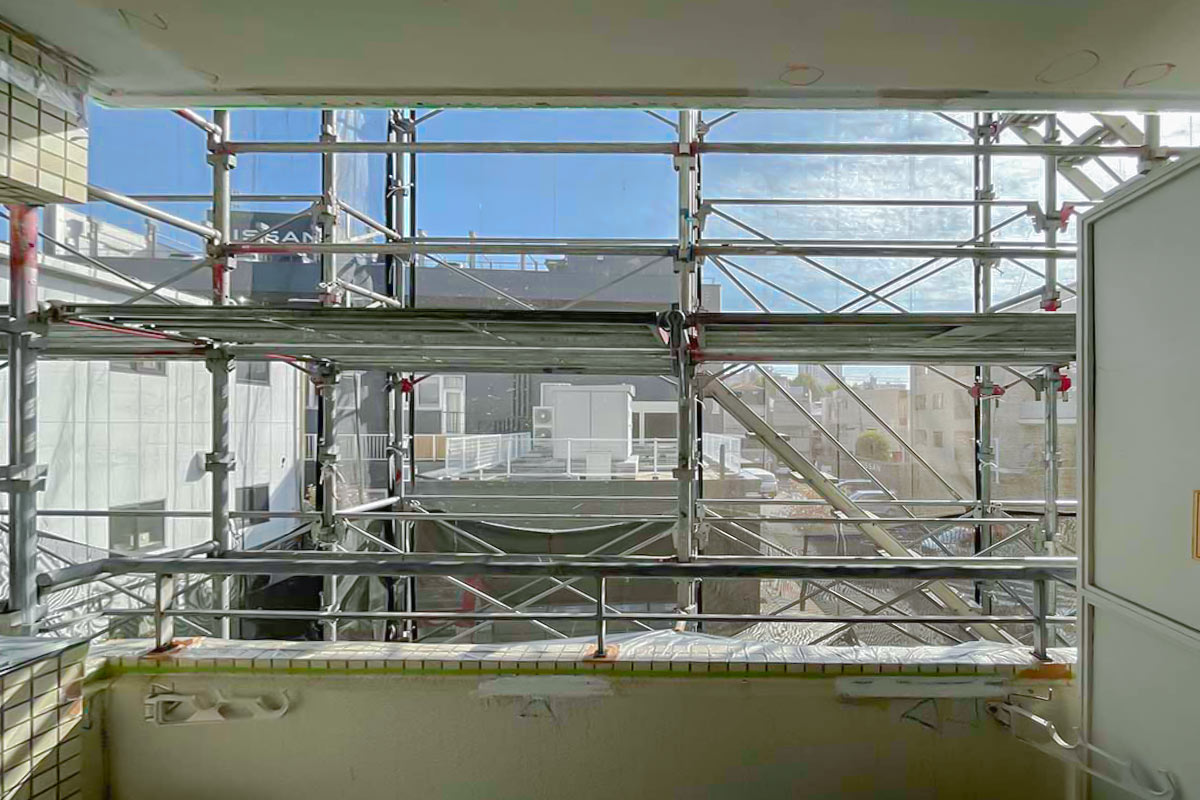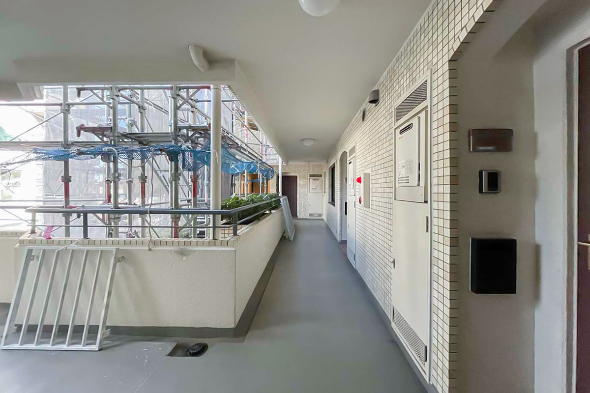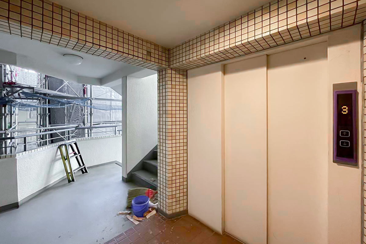 取材時は大規模修繕中で足場で外観は確認できなかったのですが、少しレトロなアイボリーのタイル張りの外観でしょうか。