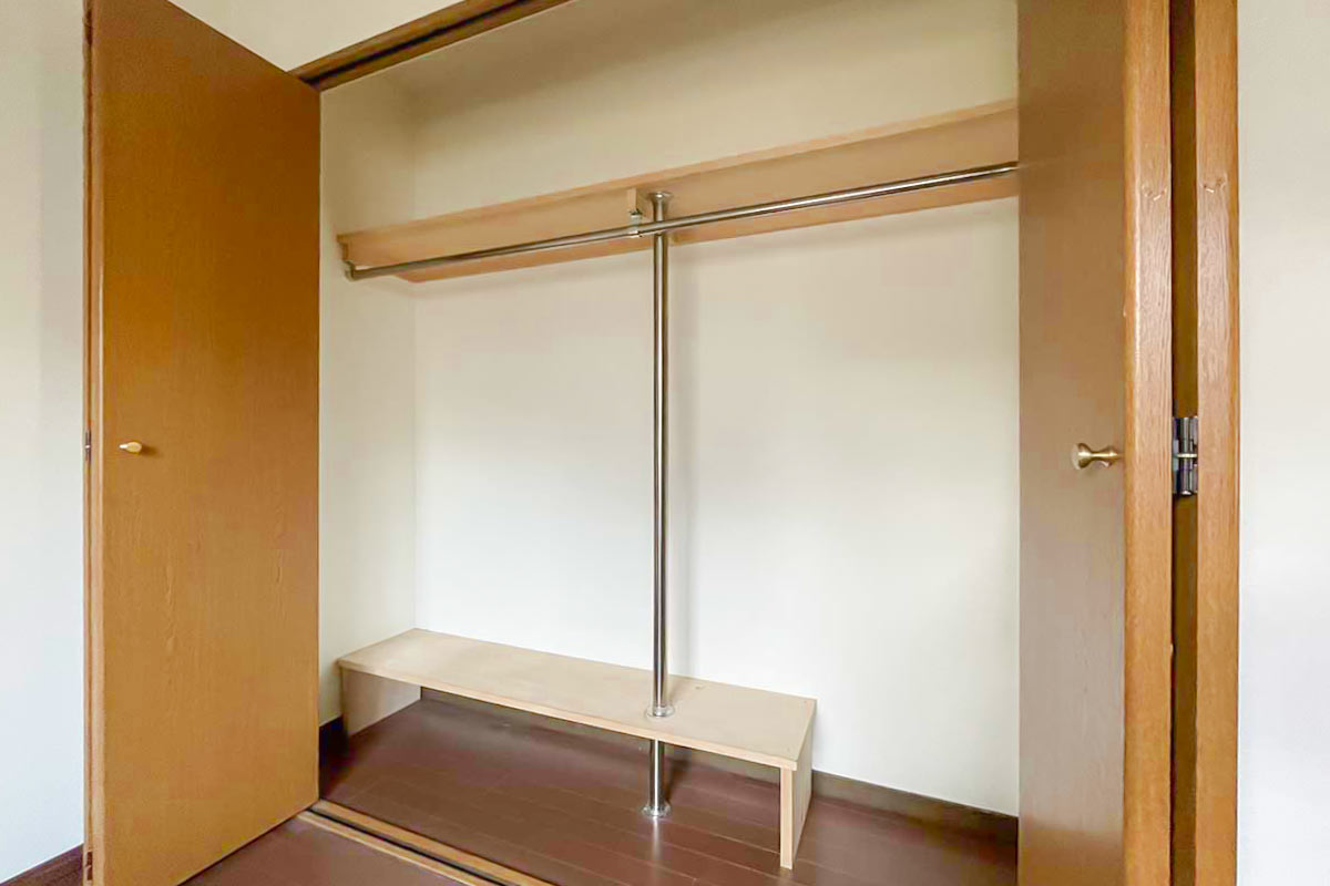 いわゆるクローゼットタイプは少ないので、洋服をたくさんお持ちの場合は工夫が必要です。