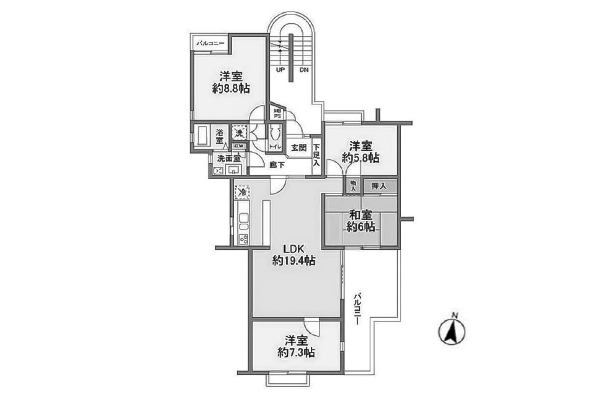 ご紹介のお部屋は2階、ゆったり97㎡の4LDK!