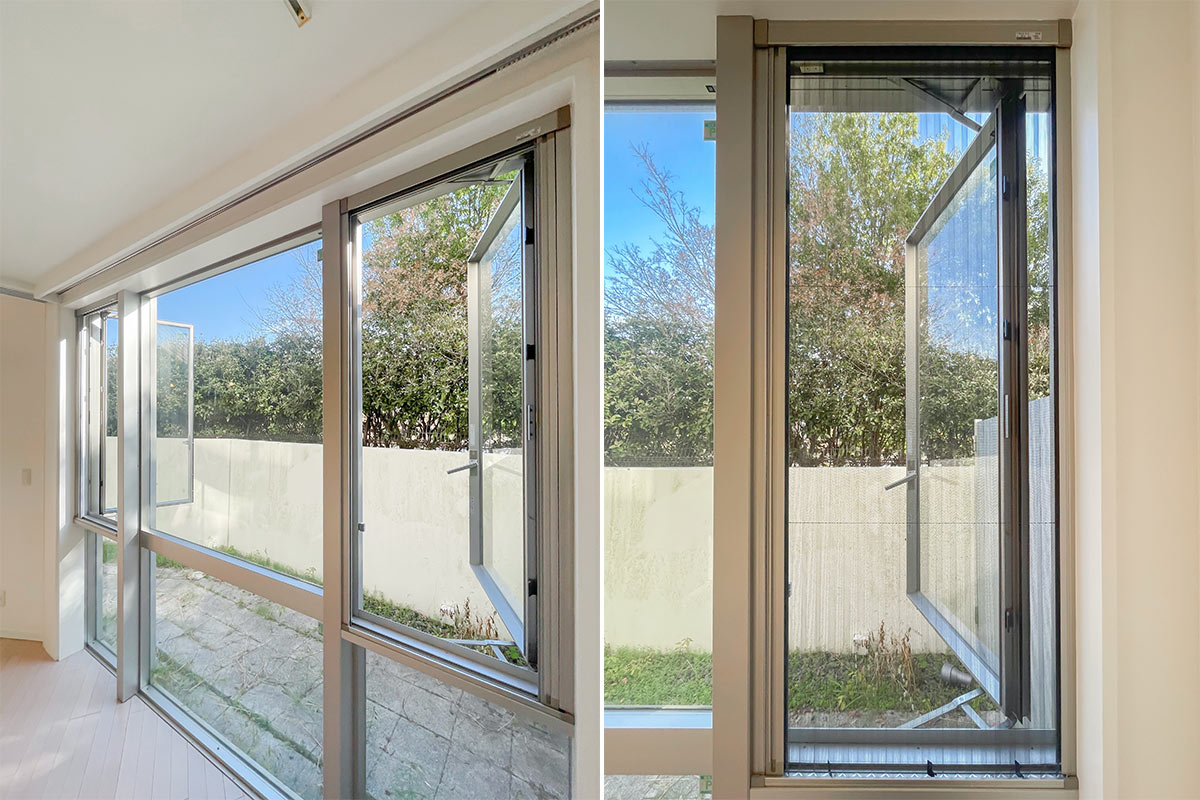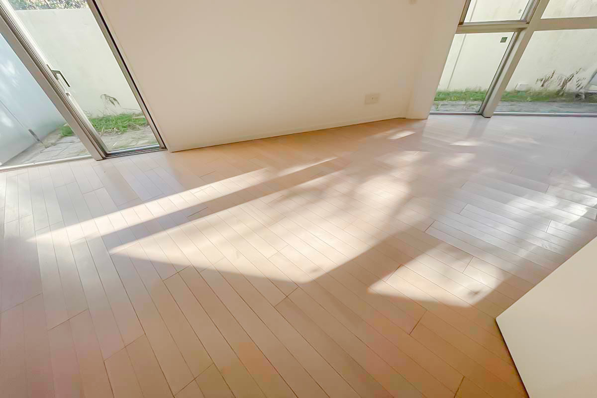 大きな窓から差しこむ陽射しは、午前中〜午後にかけて表情を変えます。