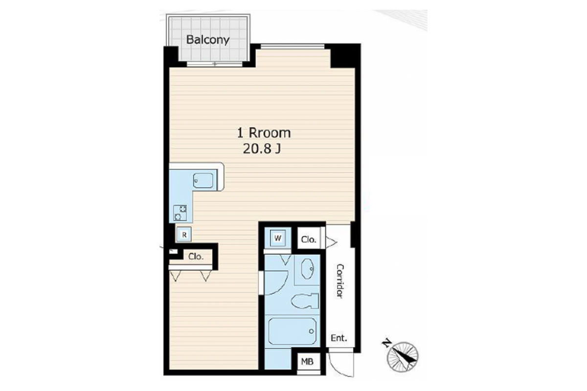 部屋は約48㎡、ワンルーム。ワンルームといっても実質1LDKのような形です。