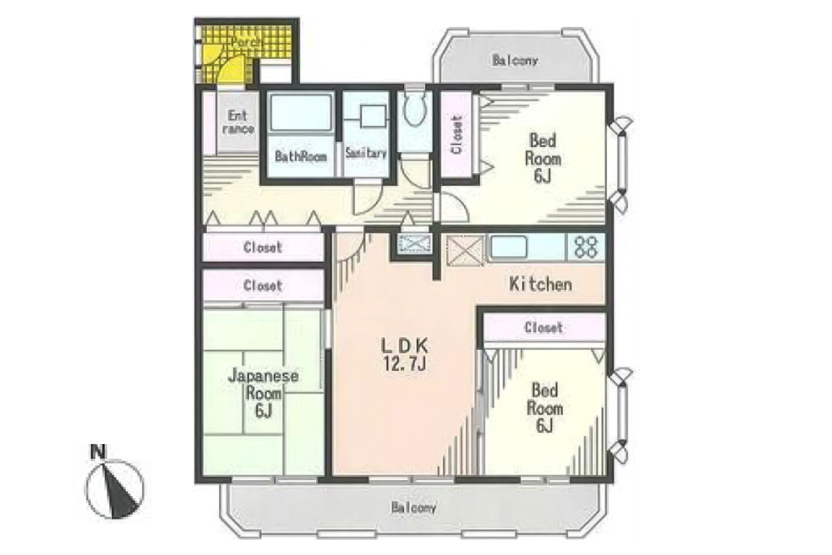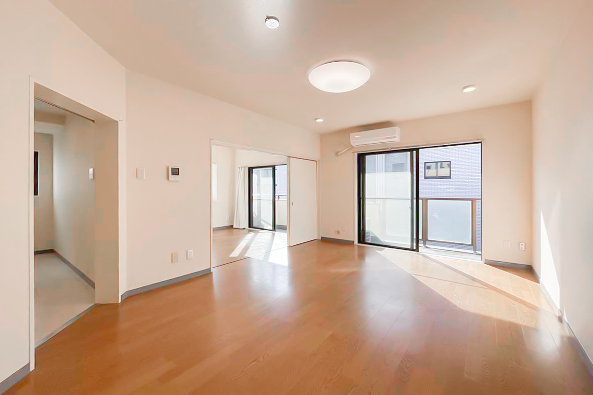 LDK・洋室・和室は横並びでワイドバルコニー。洗濯物もたっぷりと干すことができます。