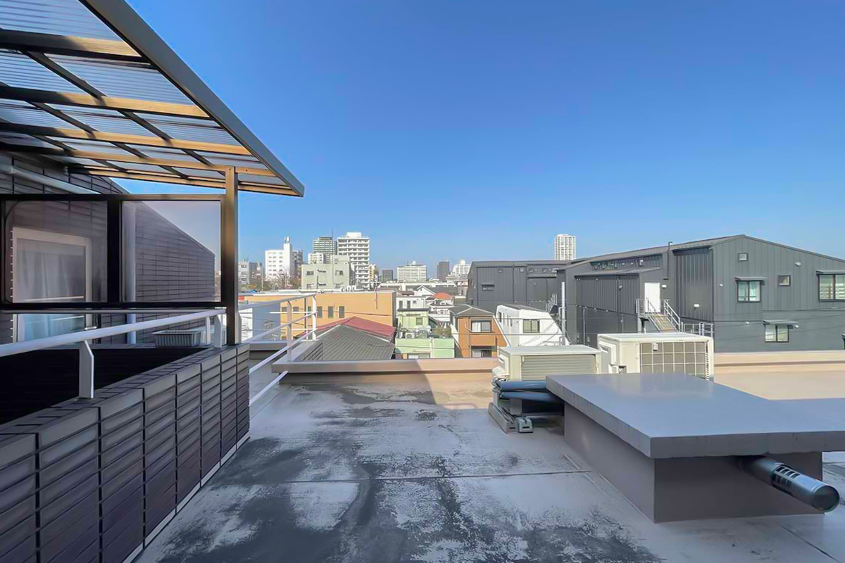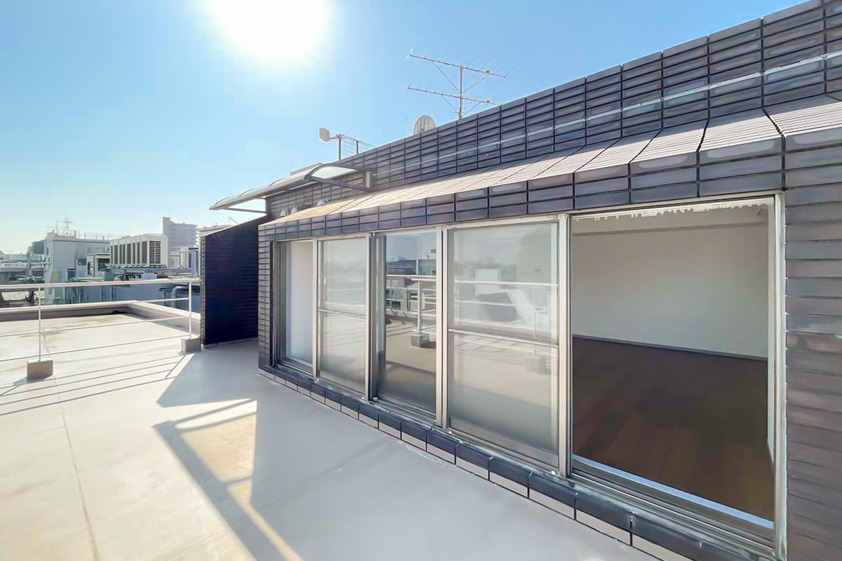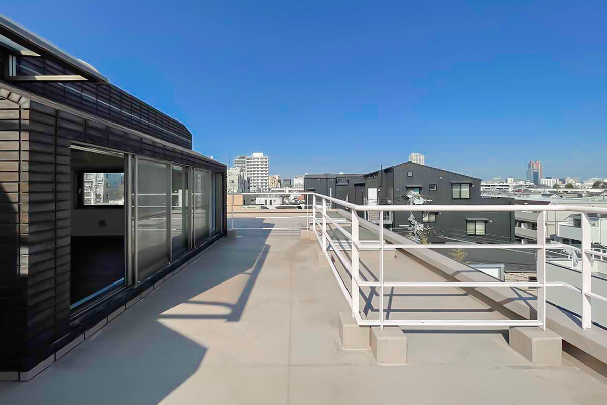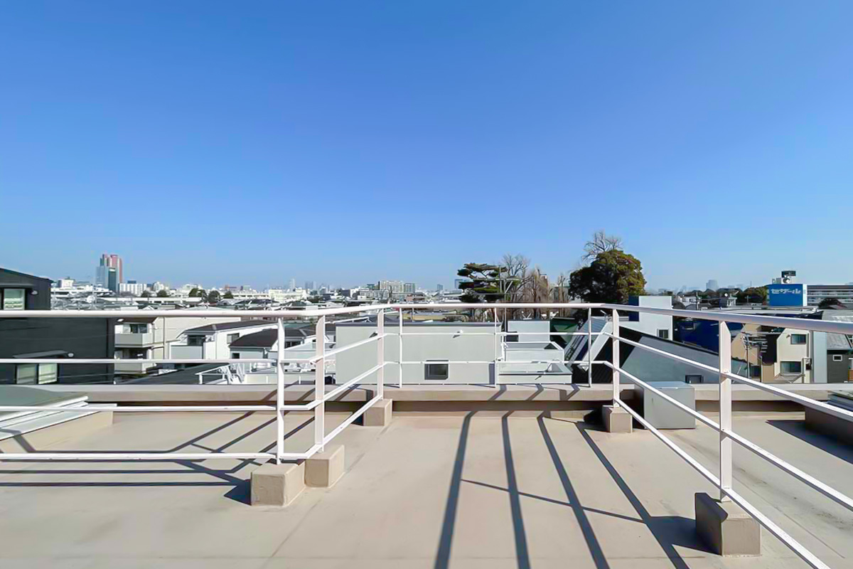 広いルーフバルコニーには陽が降り注ぎ、視線を遮るものも無く、太陽と空を浴びることができる空間。