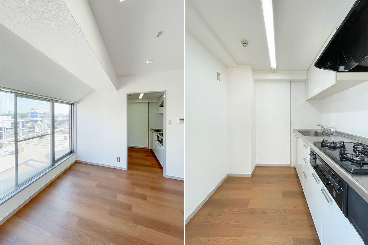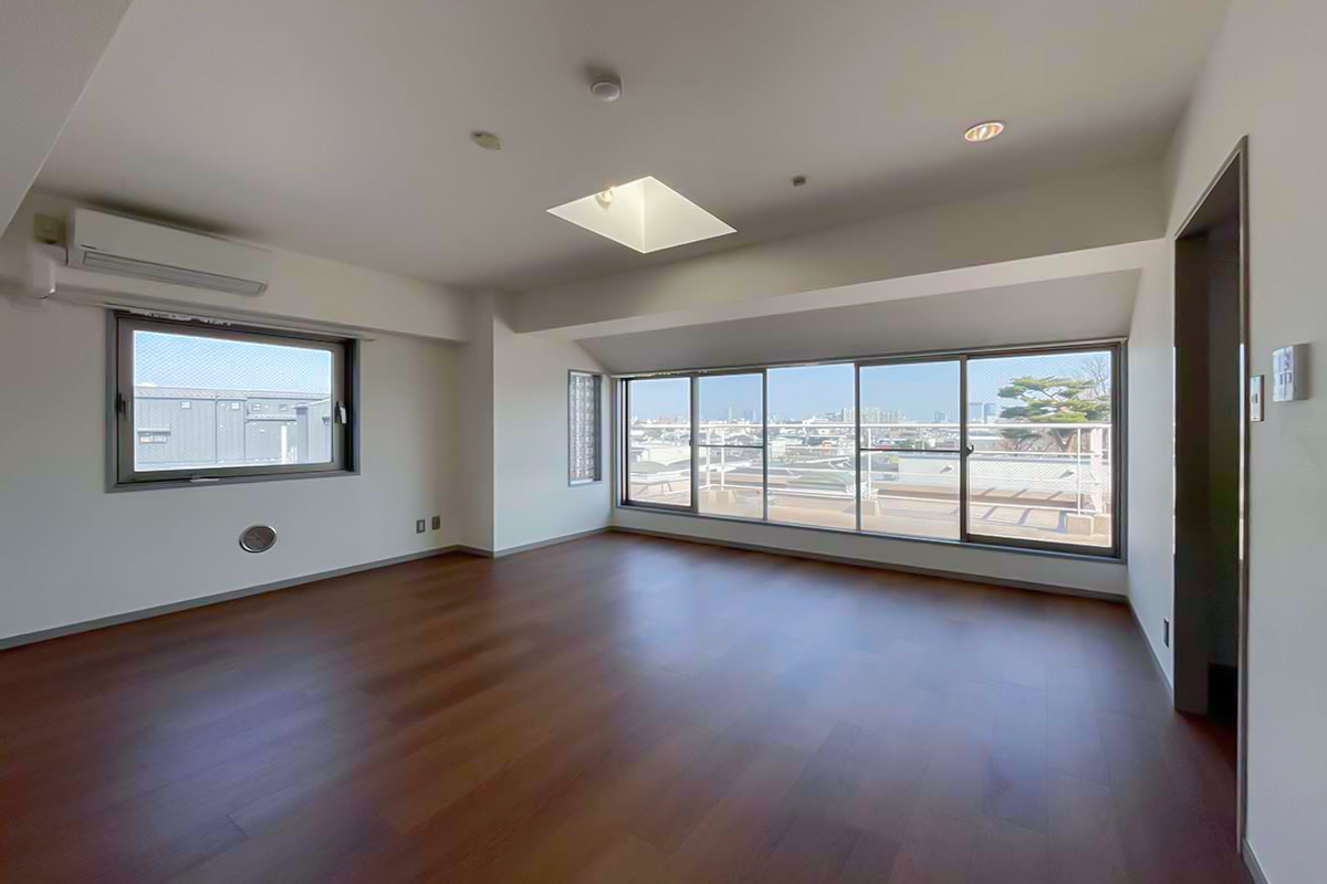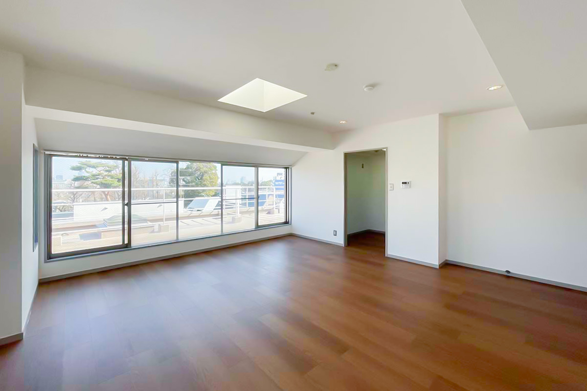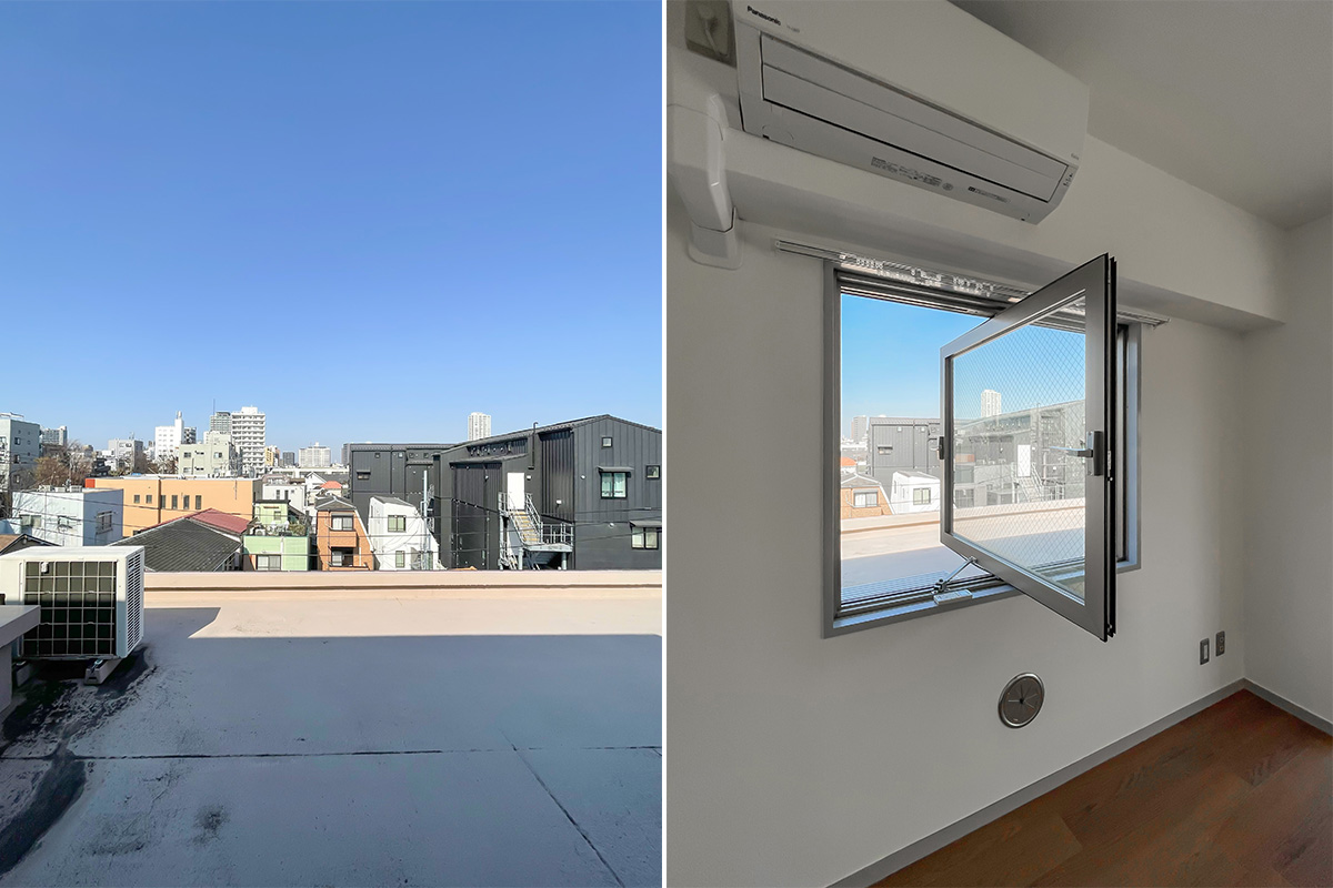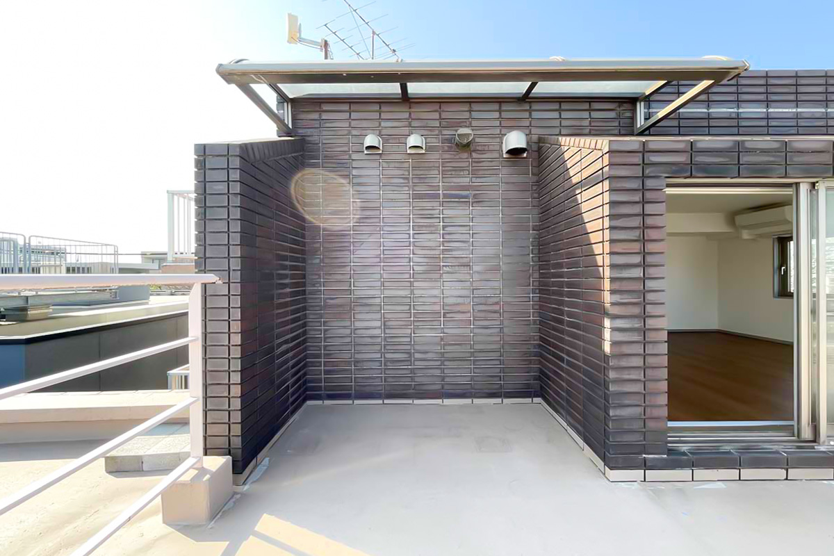 広いルーフバルコニーには陽が降り注ぎ、視線を遮るものも無く、太陽と空を浴びることができる空間。