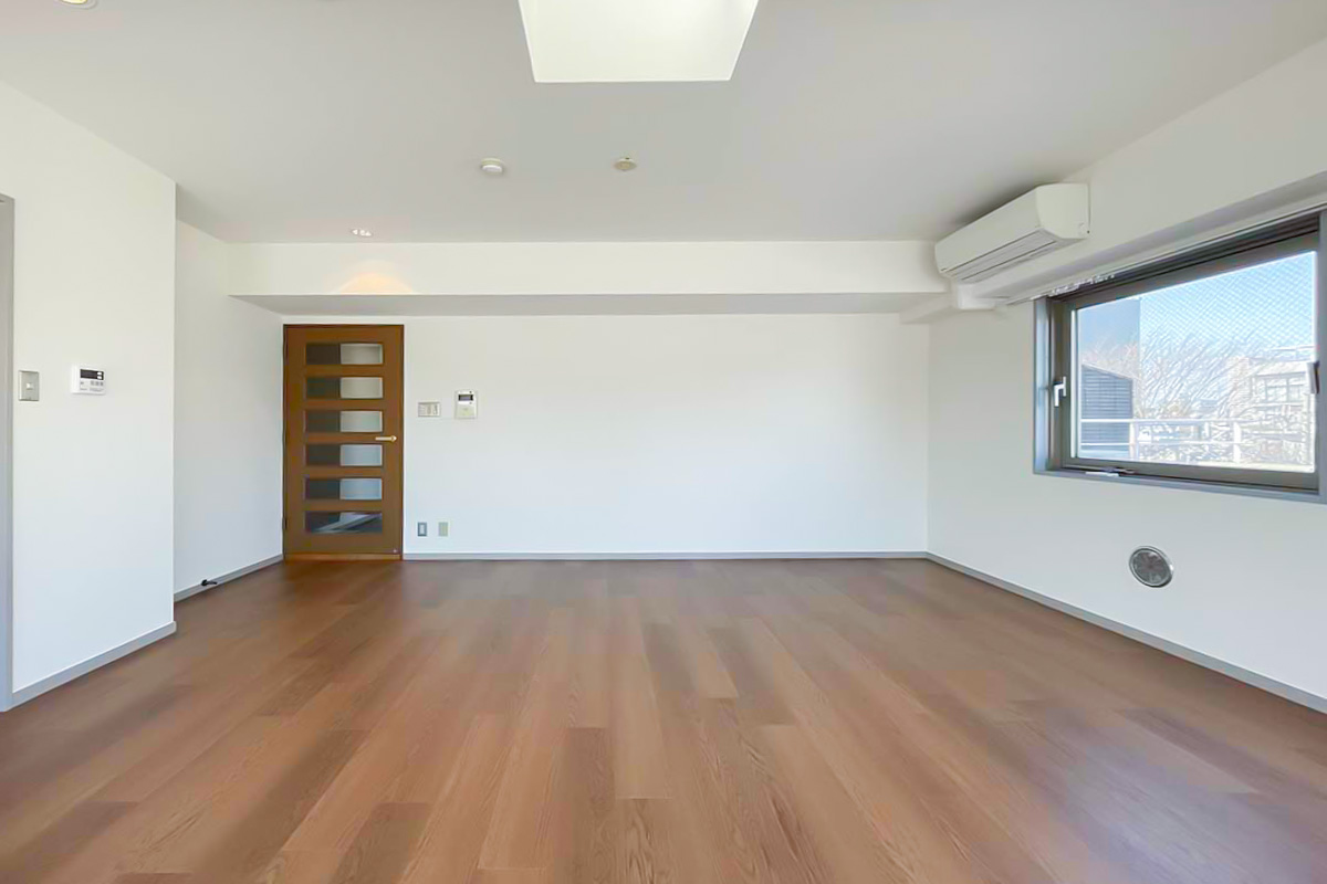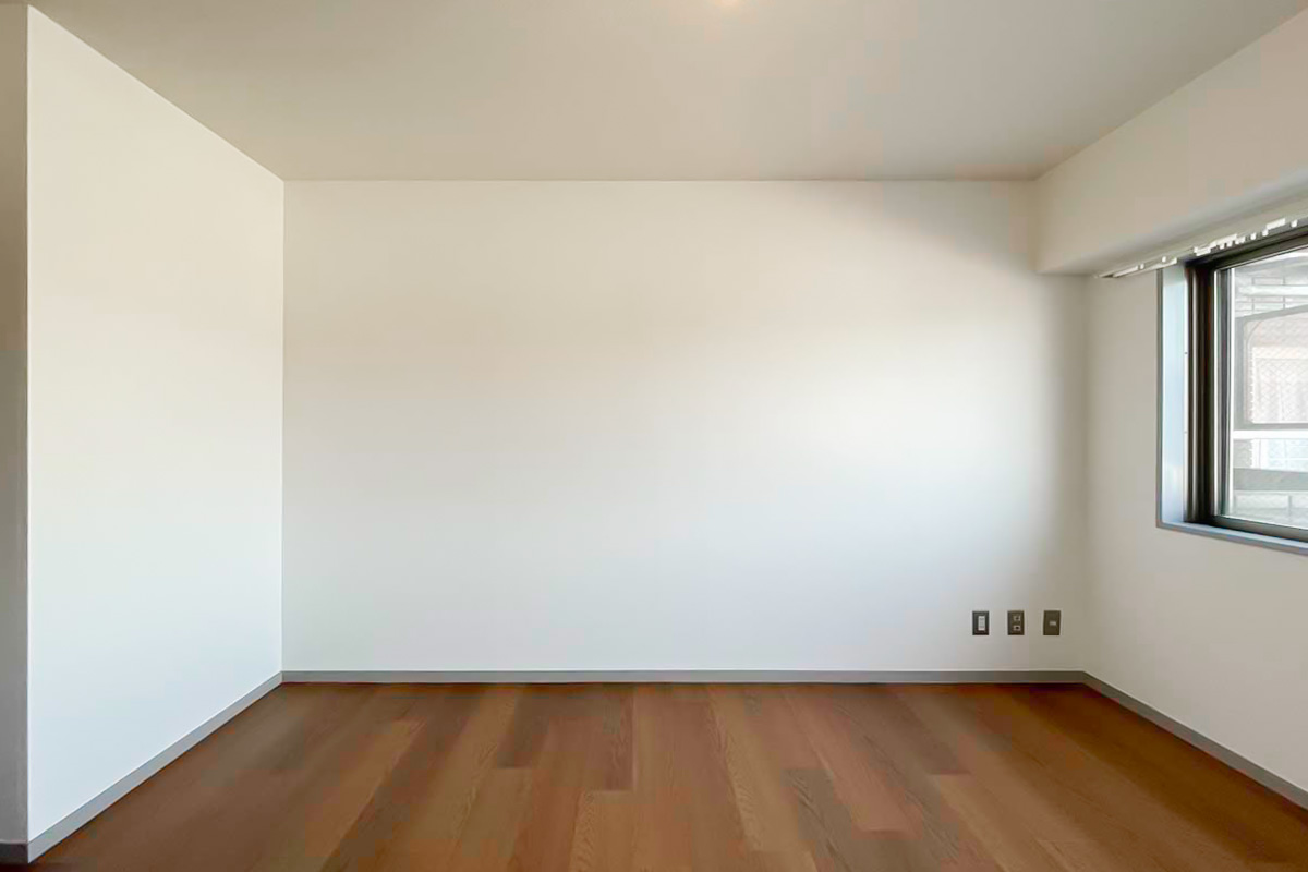 部屋の形自体は家具配置のしやすそうな広いリビングで、至ってシンプル。