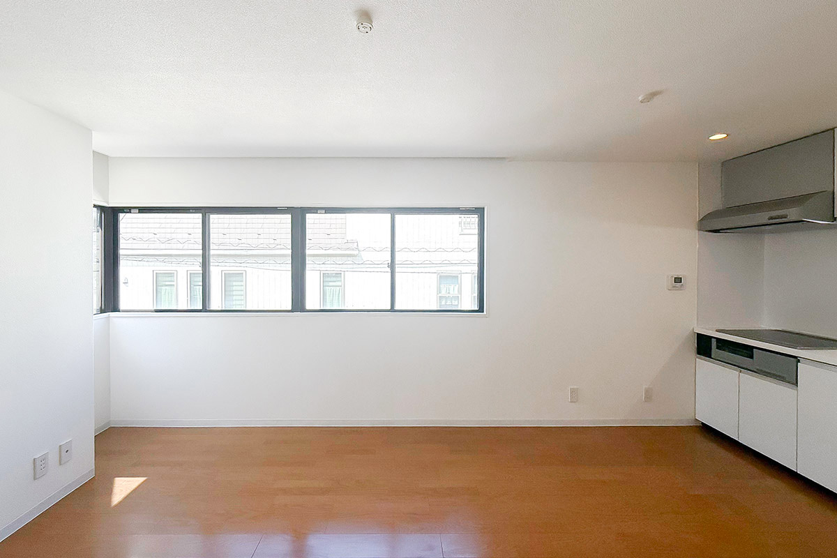 リビングは採光が北側でも窓が広く、室内は想像以上の明るい空間です◎
