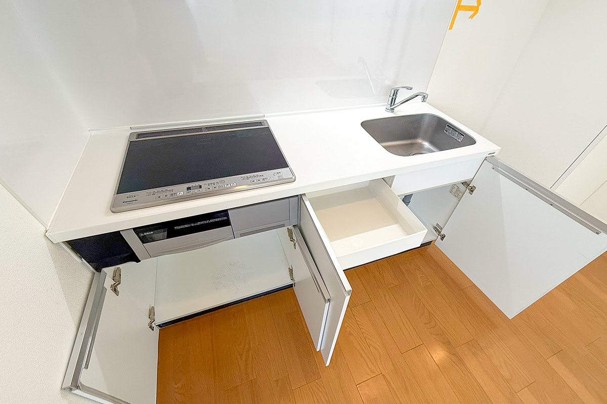 水回りはお手入れのしやすいIHコンロ、バストイレは別、独立洗面台の隣には収納も充実。